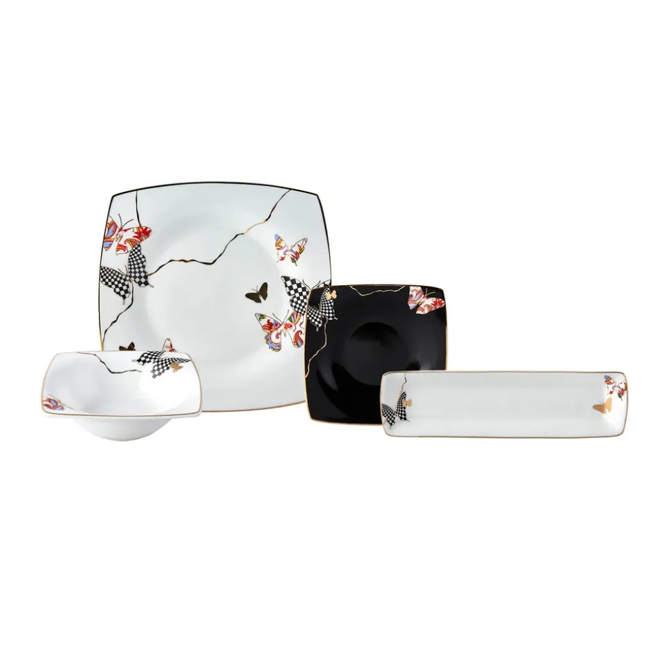 Karaca Fine Pearl Unique 14-teiliges quadratisches Frühstücksset und Servierschalen für 6 Personen