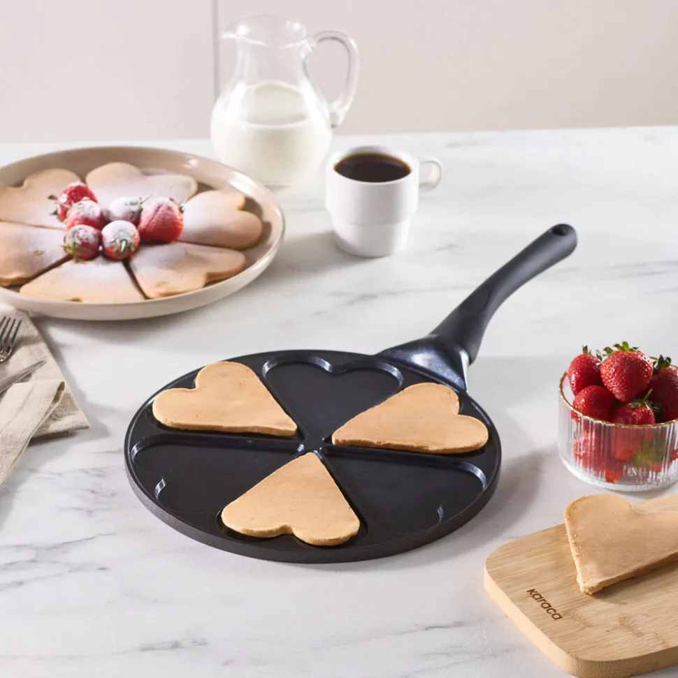 Karaca Fluffy Love Antihaft-Pfannkuchenpfanne mit Induktionskeramikbeschichtung, 26 cm, schwarz