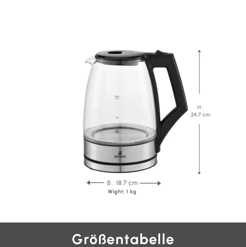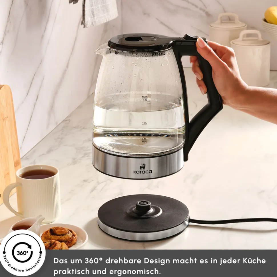 Karaca Glacia Glas Wasserkocher, 2200W, 1,8L, Transparent