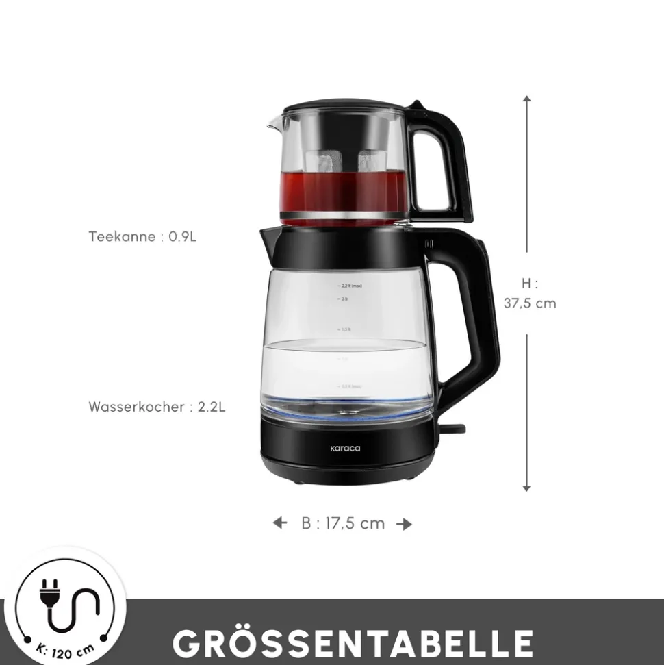 Karaca Glass Tea XL 2 in 1 Glas-Teemaschine Shiny Black