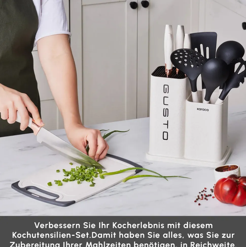 Karaca Gusto 12-teiliges Messer-/Schneidebrett-Set in Crem