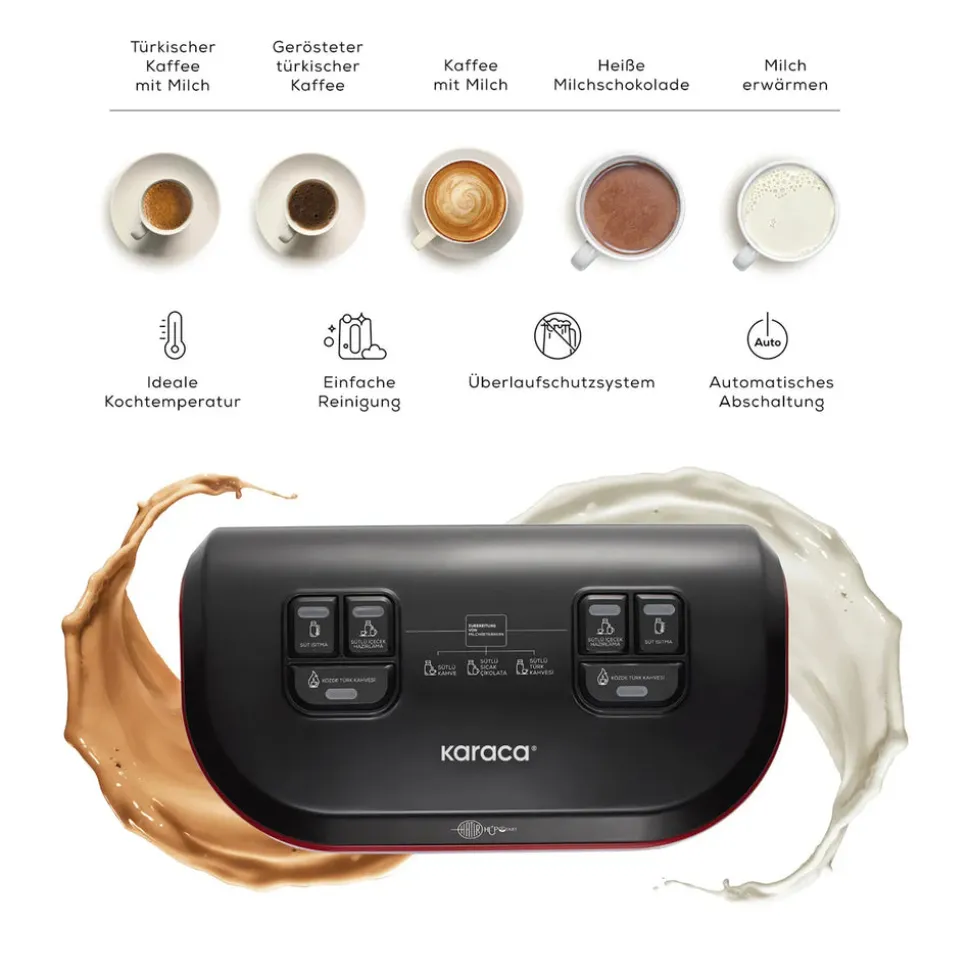 - Mit der Möglichkeit, 2 verschiedene Getränke gleichzeitig zuzubereiten, können Sie auf der einen Seite Milch erhitzen und auf der anderen Seite Ihren türkischen Kaffee zubereiten.