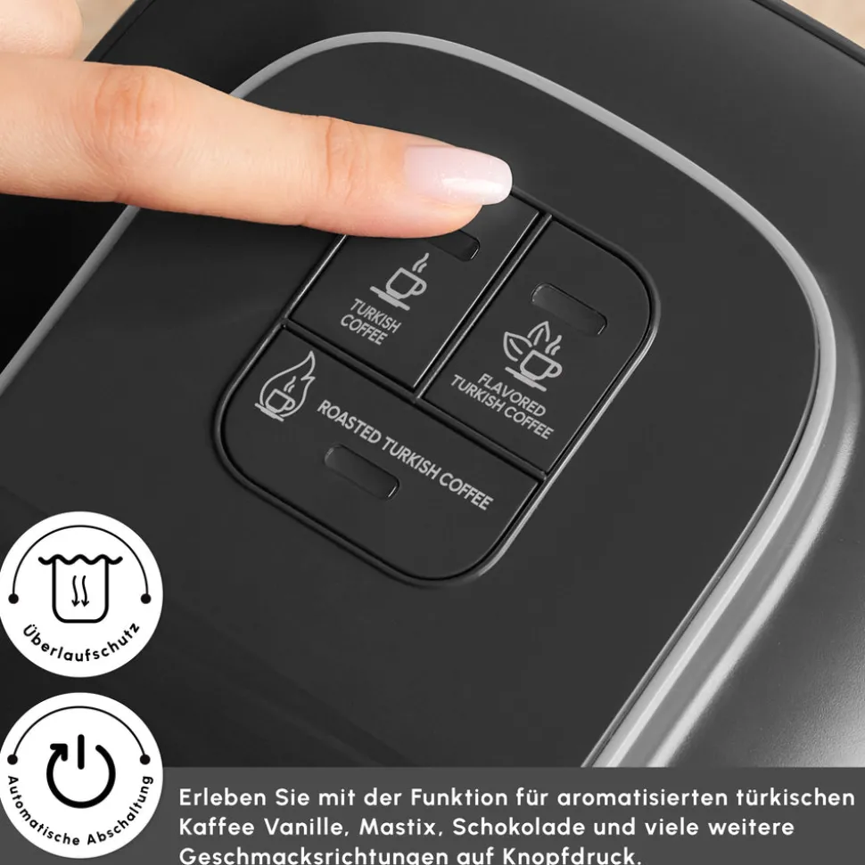 Mit der Karaca Hatır Neo Türkischen Kaffeemaschine genießen Sie türkischen Kaffee, türkischen Kaffee nach Glut-Art und aromatisierten türkischen Kaffee.
