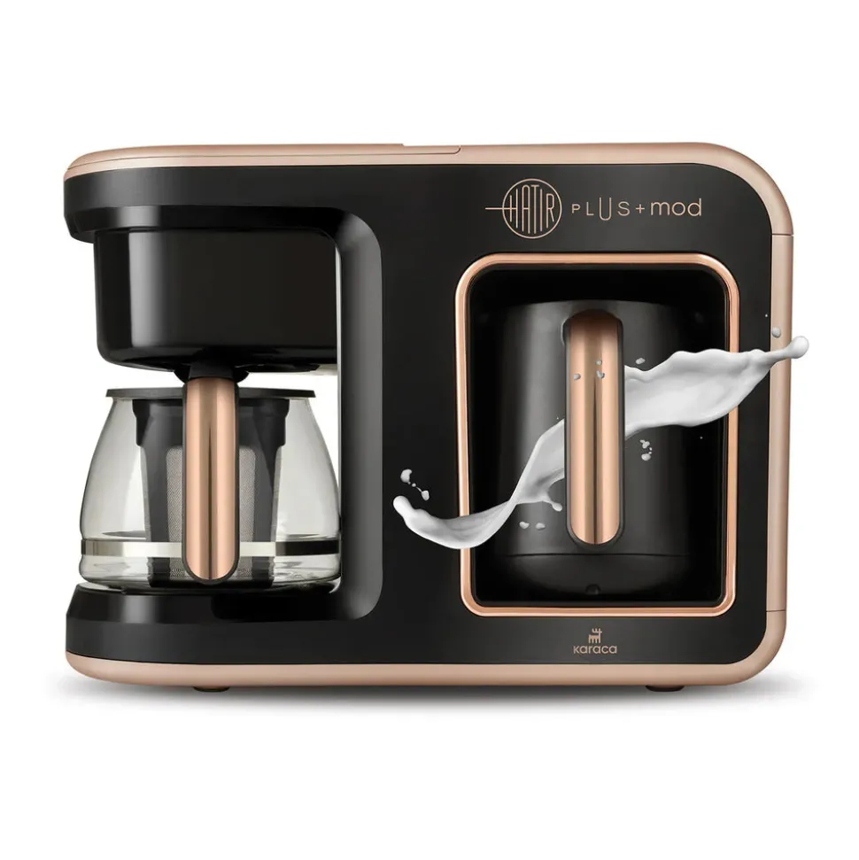 Mit der Karaca Hatır Plus Mod 5 in 1 Essential Kaffee- und Teemaschine können Sie gerösteten türkischen Kaffee, Filterkaffee oder Tee aufbrühen, Milchgetränke zubereiten und Milch je nach Modus kochen. Sie können mit dieser Maschine sogar 2 Getränke Ihrer Wahl gleichzeitig zubereiten.