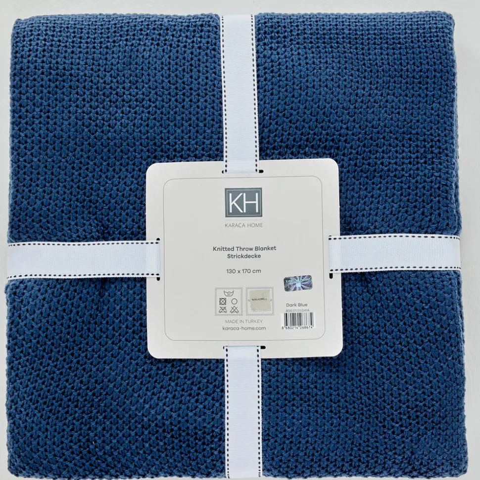Karaca Home dunkelblau Strickdecke Öko-Tex zertifiziert