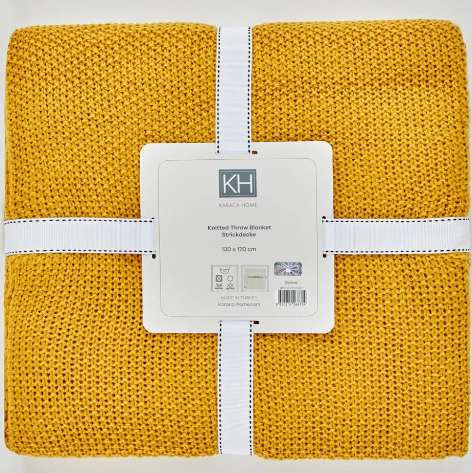 Karaca Home ocker Strickdecke Öko-Tex zertifiziert