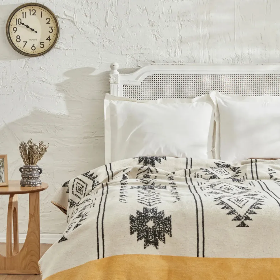 Karaca Home Raya Doppelte Baumwolldecke, Senf
