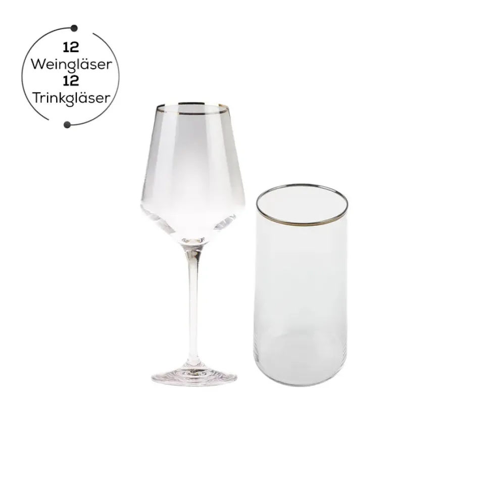 Karaca Ines 24-teiliges Gold Gläser-Set für 12 Personen