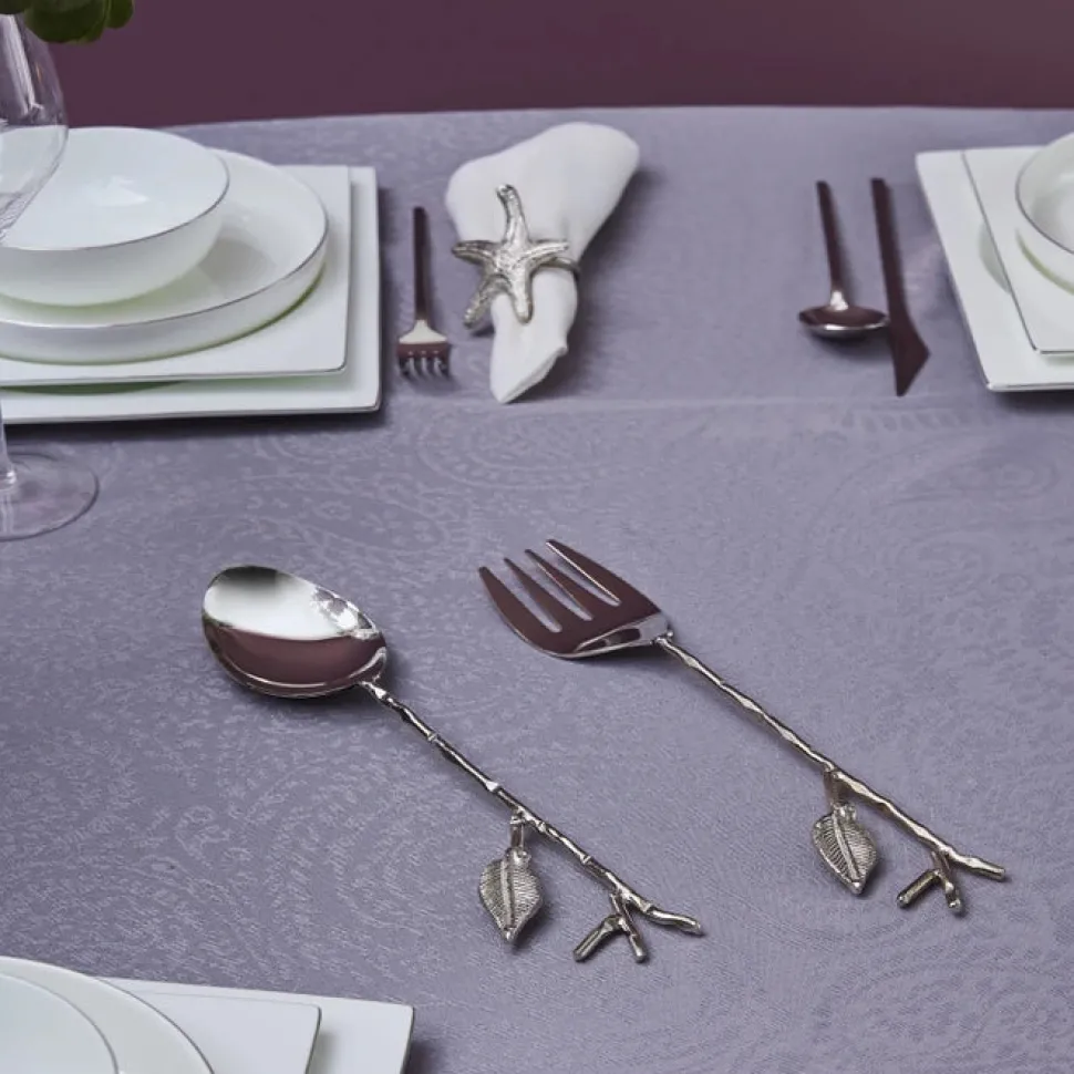 Karaca Leaf Servierbesteck Silber-Gold – Löffel- und Gabelset