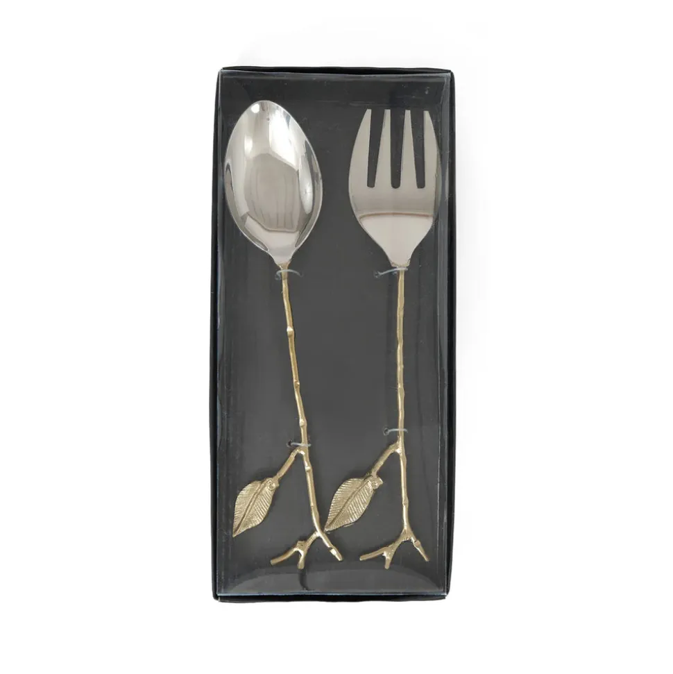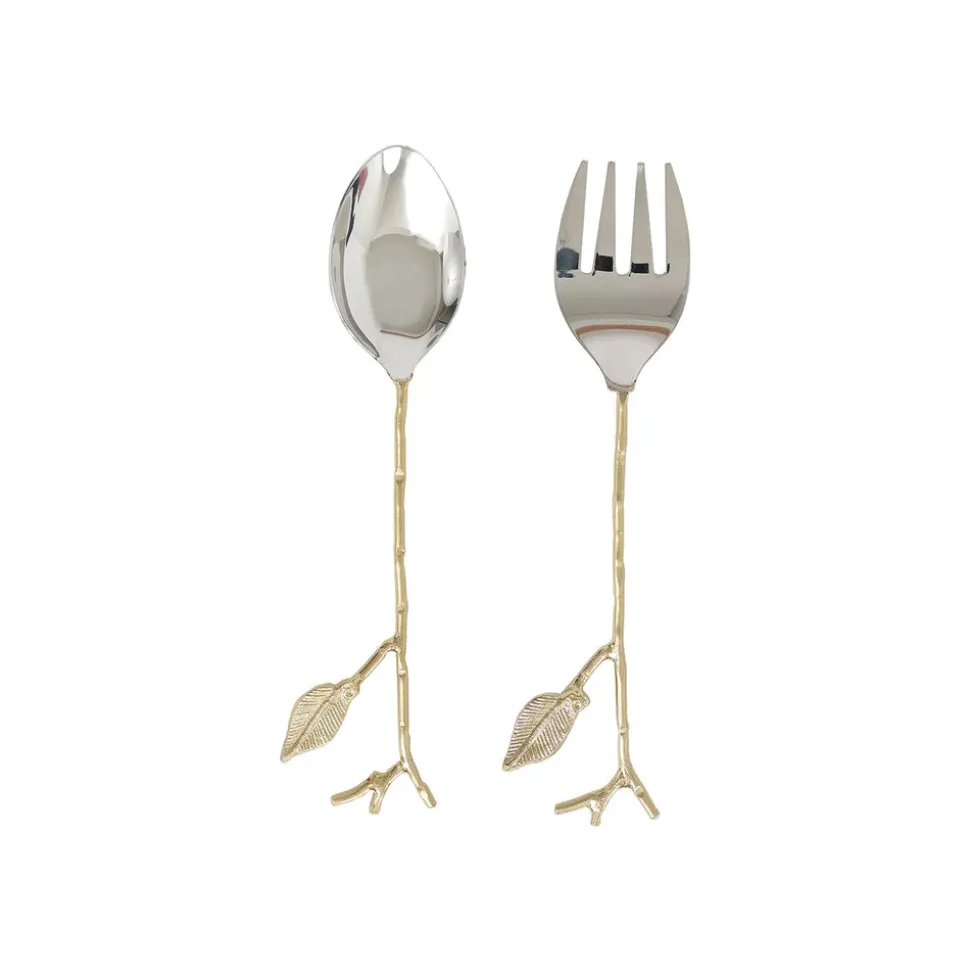 Karaca Leaf Servierlöffel und Gabel Set Gold