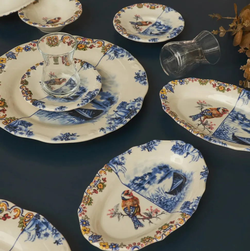 Karaca Leland Birdy 26-teiliges Frühstücksset und Servierschalen für 6 Personen