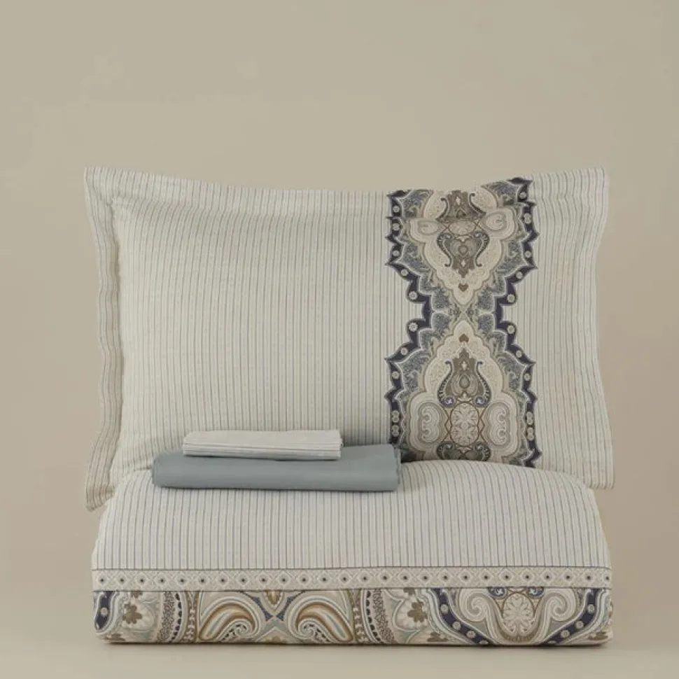 Karaca Lemy Bettwäsche-Set aus 100 % Baumwoll-Satin, Einzelbett, Blau