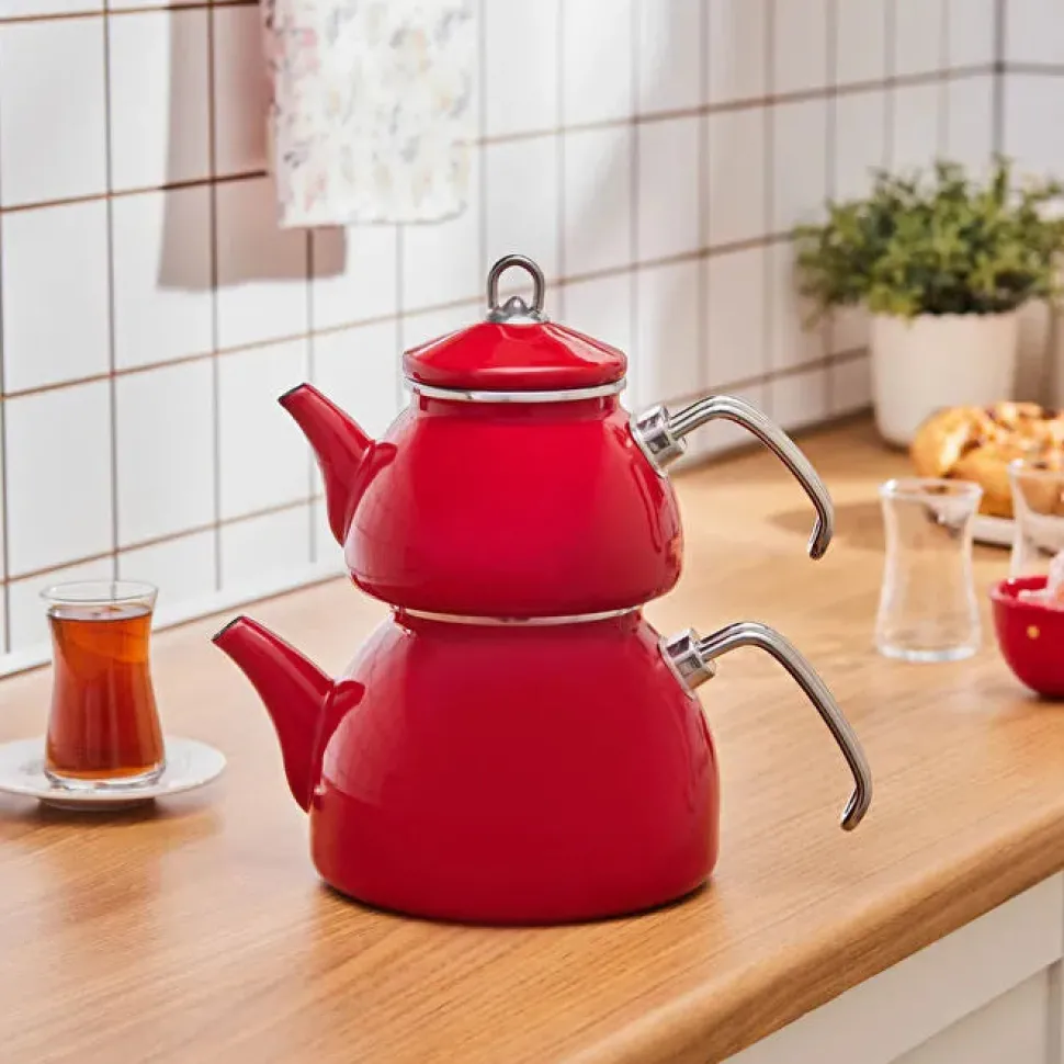 Karaca Loreto Emaille-Teekannen-Set – Rot
