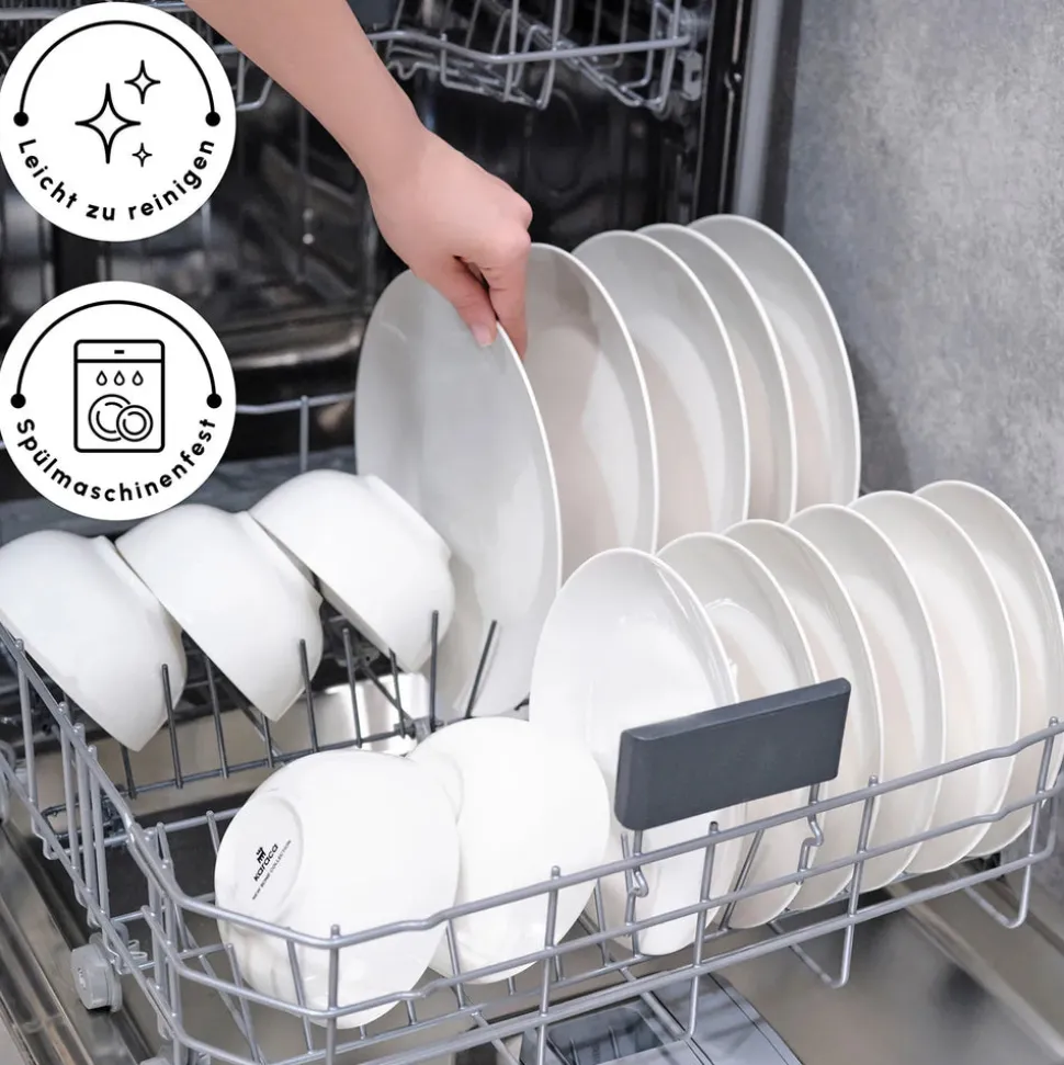 Geeignet für Geschirrspüler, Mikrowelle, Backofen und Kühl-/Gefrierschrank.