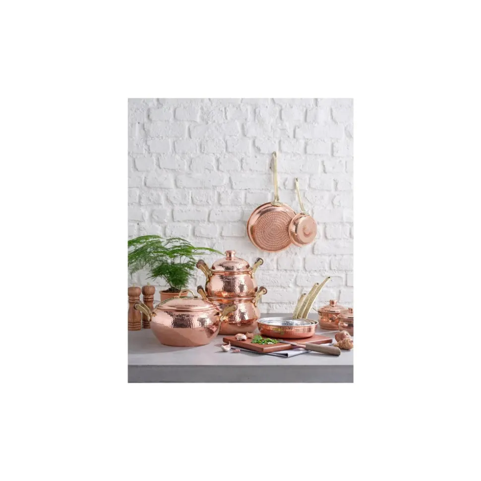 Pflege von Kupferprodukten – Dunkeln Kupferprodukte mit der Zeit nach? -Ja, es ist normal, dass unbeschichtetes Kupfer mit der Zeit dunkler wird. Kupferprodukte, die auf der Außenseite mit Nickel beschichtet sind, dunkeln nicht nach; und eine Zinnbeschichtung auf der Innenseite verursacht keine Gesundheitsschäden, wenn sie dunkel wird.—- Wie oft sollten Kupferprodukte verzinnt werden? -Je nach Häufigkeit der Nutzung ist eine Verzinnung erforderlich. Eine Verzinnung ist im Durchschnitt einmal pro Jahr erforderlich. Kupferprodukte, die mit Wasser in Kontakt kommen, wie kupferne Teekannen, Becher oder Krüge, müssen nicht verzinnt werden.—-Wie sollten Kupferprodukte zu Hause gepflegt werden?–Wenn Ihre Kupferprodukte dunkel erscheinen, können Sie die Außenfläche Ihres Kupferprodukts mit hausgemachten Aufhellern wie Tomatenmark, Zitrone und Asche polieren.