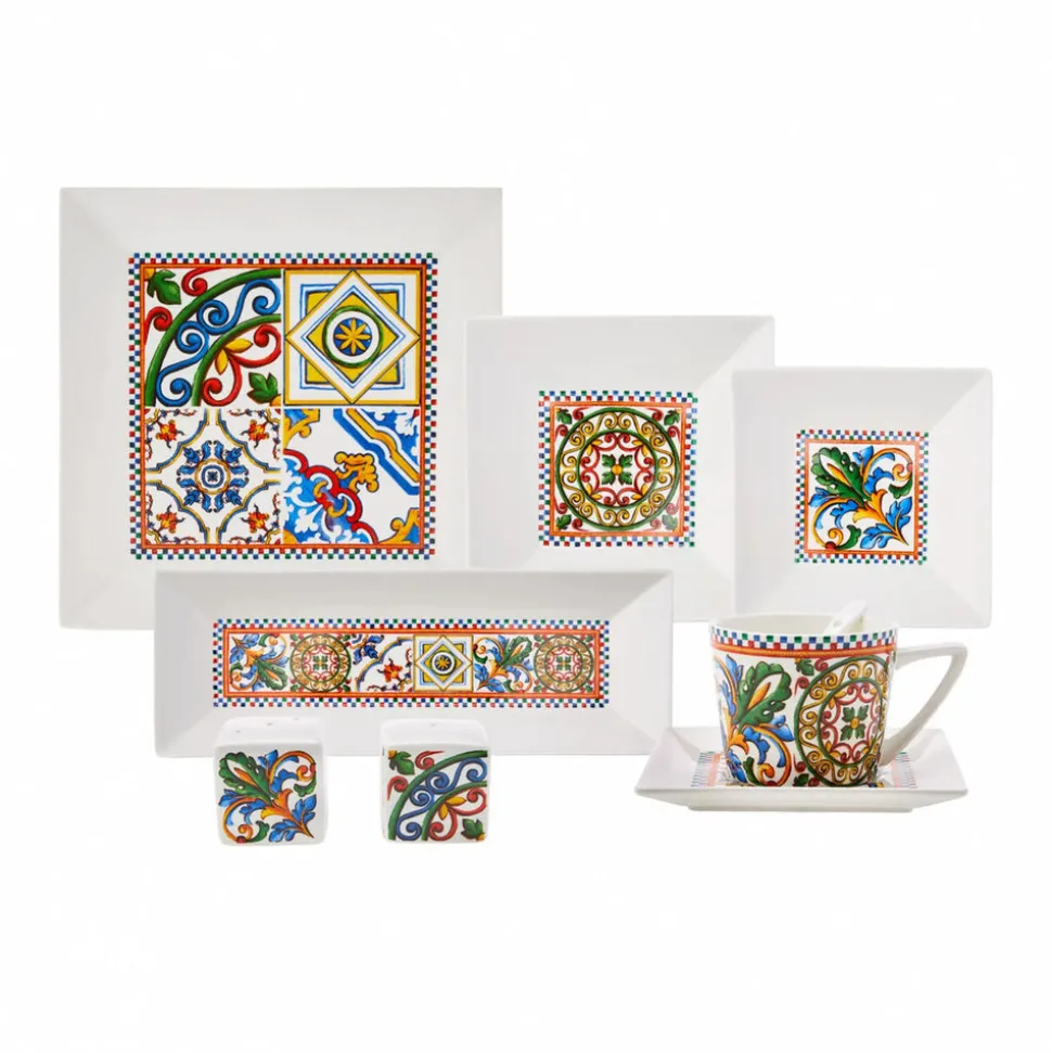 Karaca Milano Quadratisches Frühstücksset und Servierschalen 32 Teile für 6 Personen