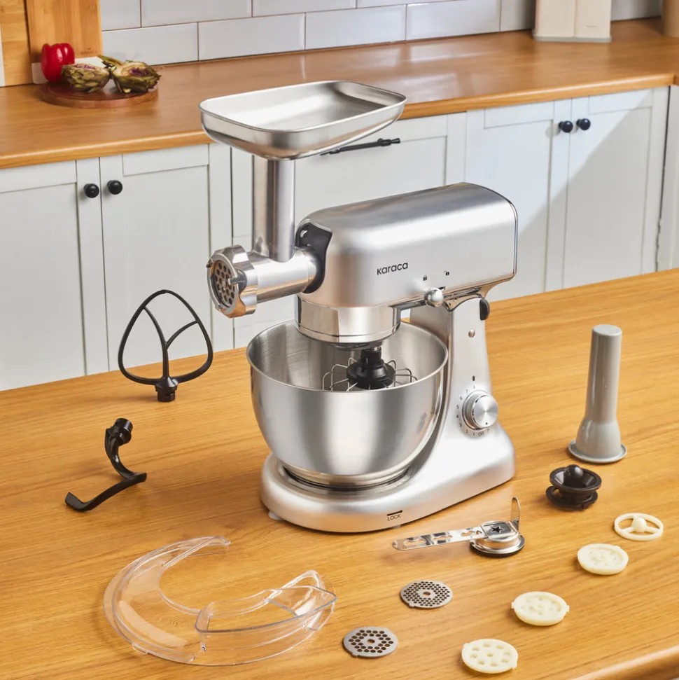 Karaca Multicast Plus Gießen Hackfleisch Mahlen / Wurst Wurst / Kibbeh / Cookie Apparat Teig Kneten Maschine Silber 5L