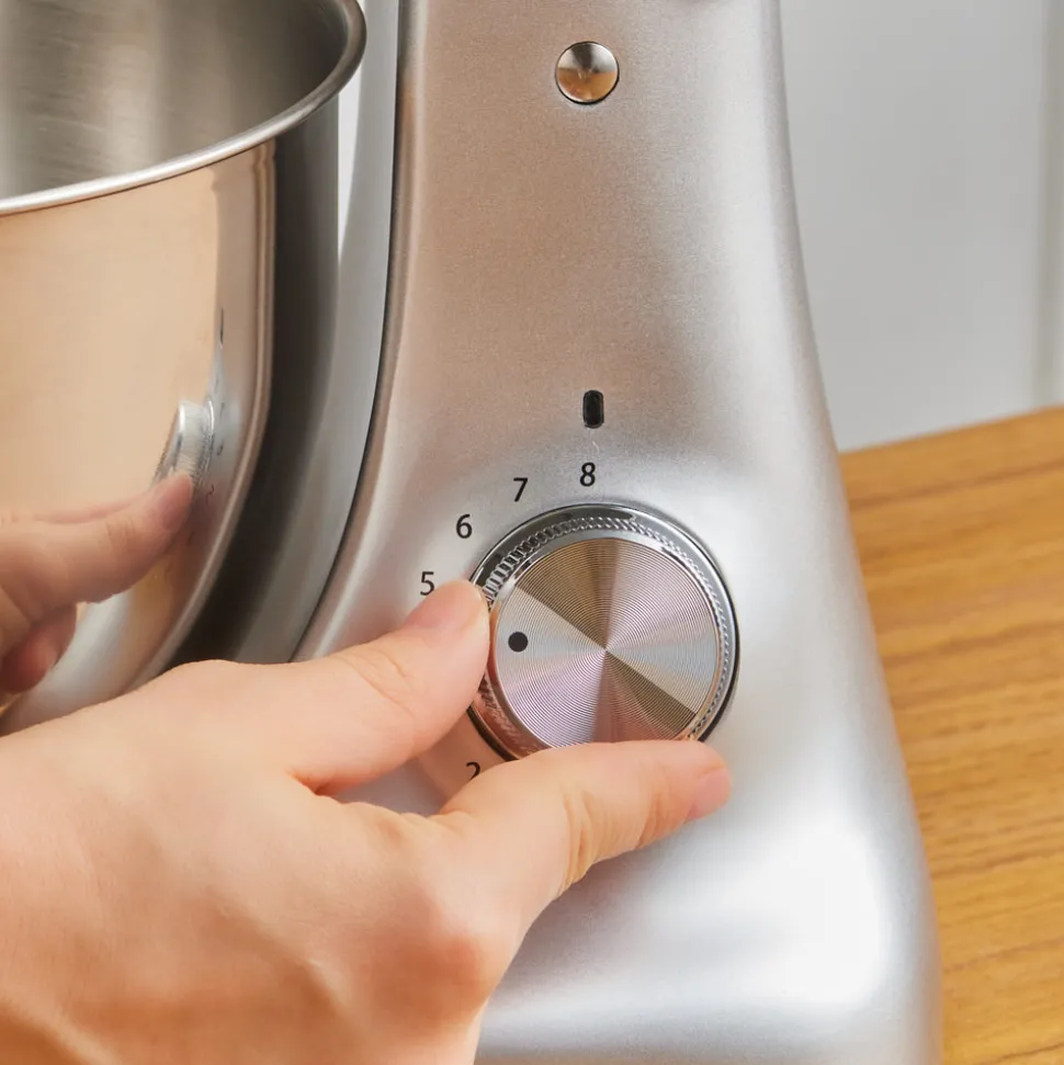 Die ultrabreite 5-Liter-Edelstahlschüssel ermöglicht die Zubereitung großer Portionen.