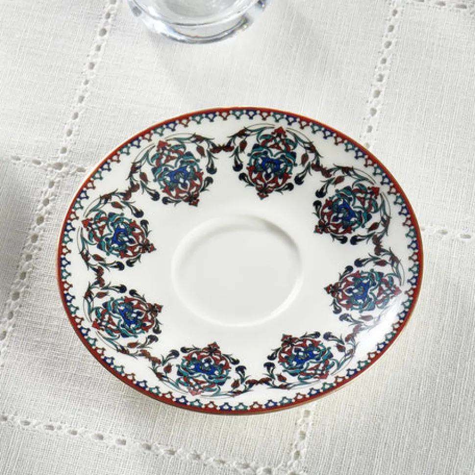 Karaca Nakkas 12-teiliges Türkisches Teeset aus Bone China für 6 Personen, 130 ml, Rot