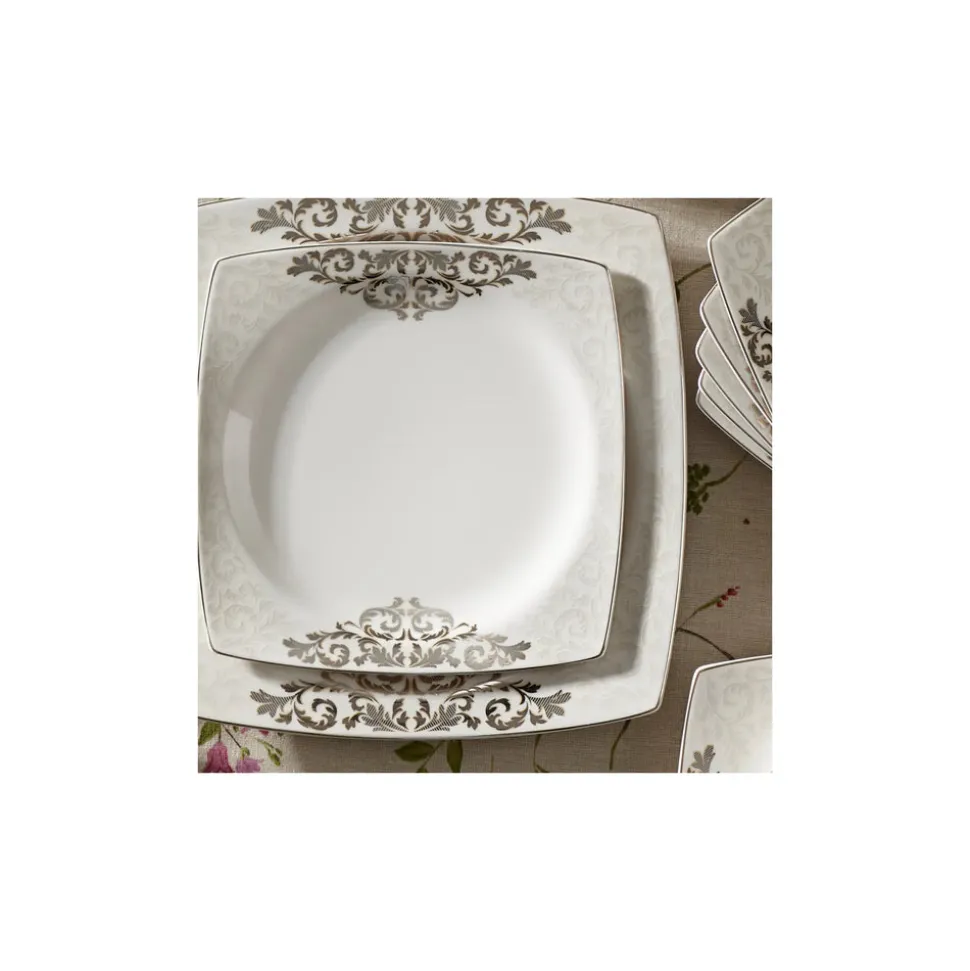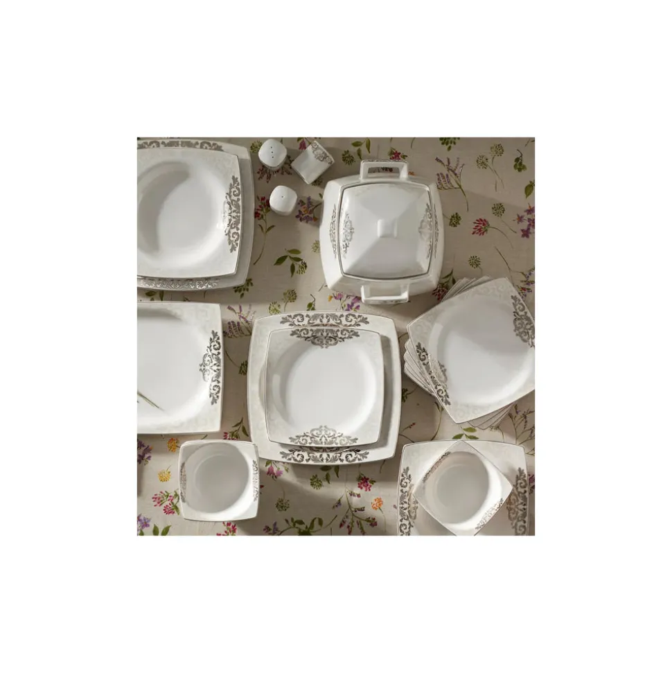 Karaca Nazende Cream 60-teiliges Tafelservice für 12 Personen Eckig
