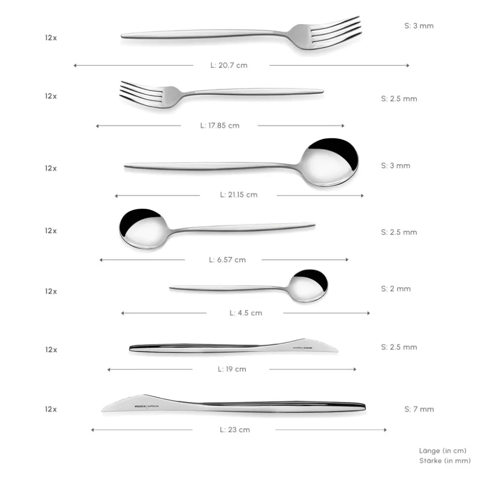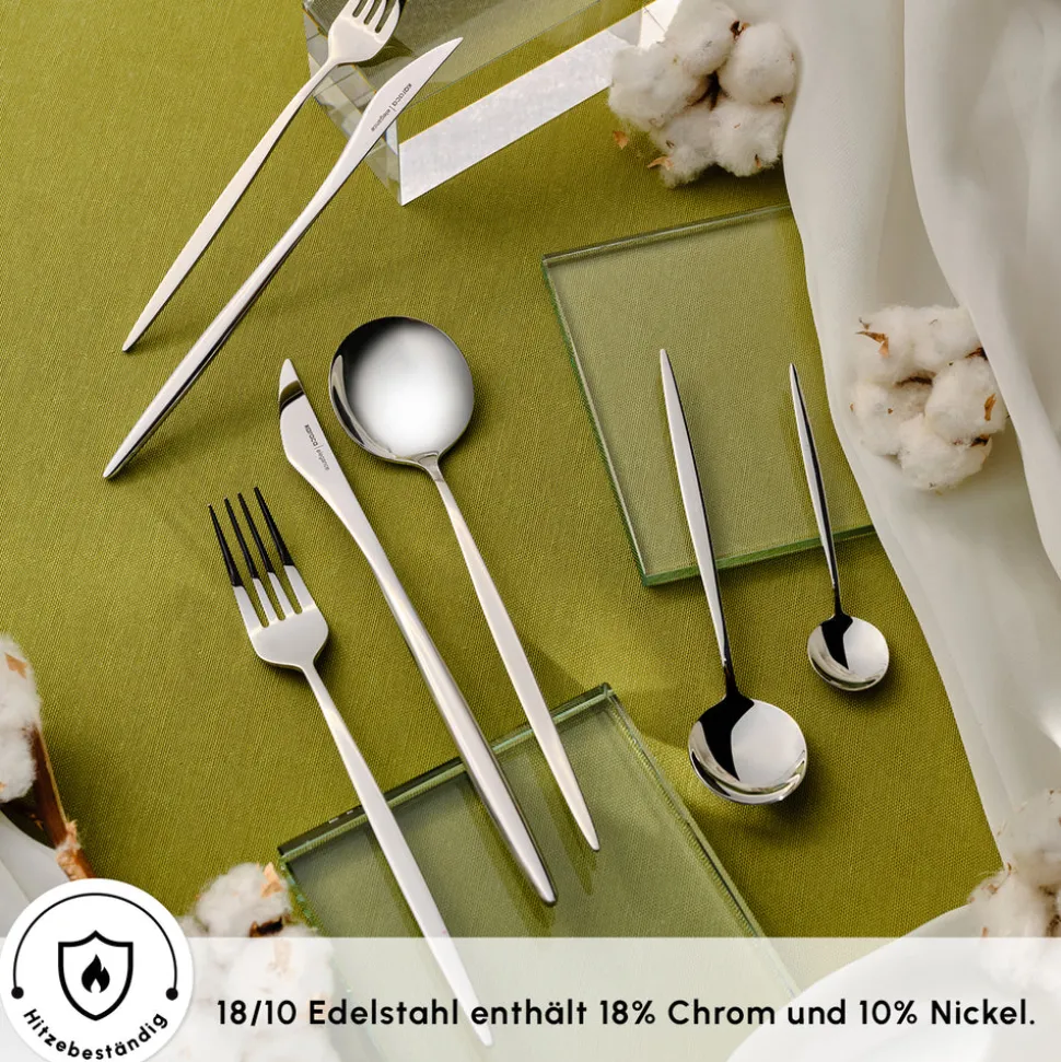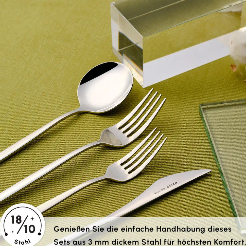 Gefertigt aus 18/10 Edelstahl, bietet dieses Besteck-Set hervorragende Haltbarkeit, eine glänzende Oberfläche und Beständigkeit gegen Anlaufen. Die polierte Silberoberfläche verleiht jeder Tafel Eleganz und macht es zu einer zeitlosen Ergänzung Ihrer Sammlung. Entworfen für Stil und Funktionalität, sorgt es für ein luxuriöses Esserlebnis im Alltag.