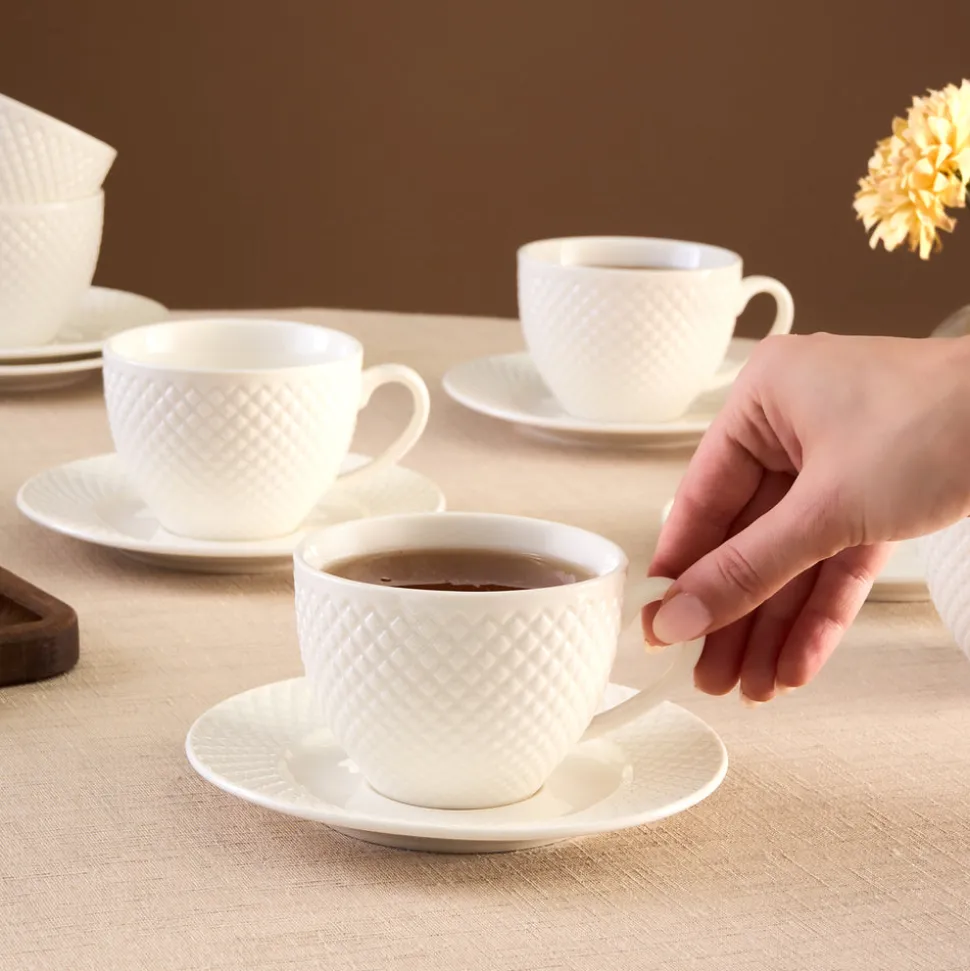 Karaca Nina Embossed Teetassen-Set für 6 Personen, 220 ml