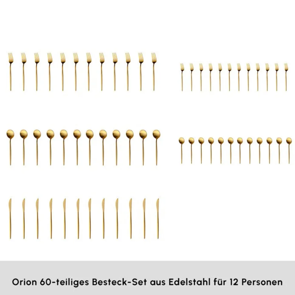 Karaca Orion Matte Gold 12-Personen 60-Teiliges Besteckset