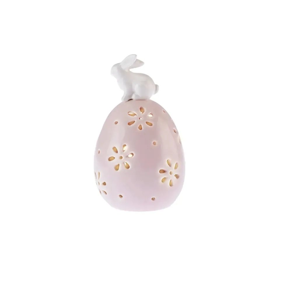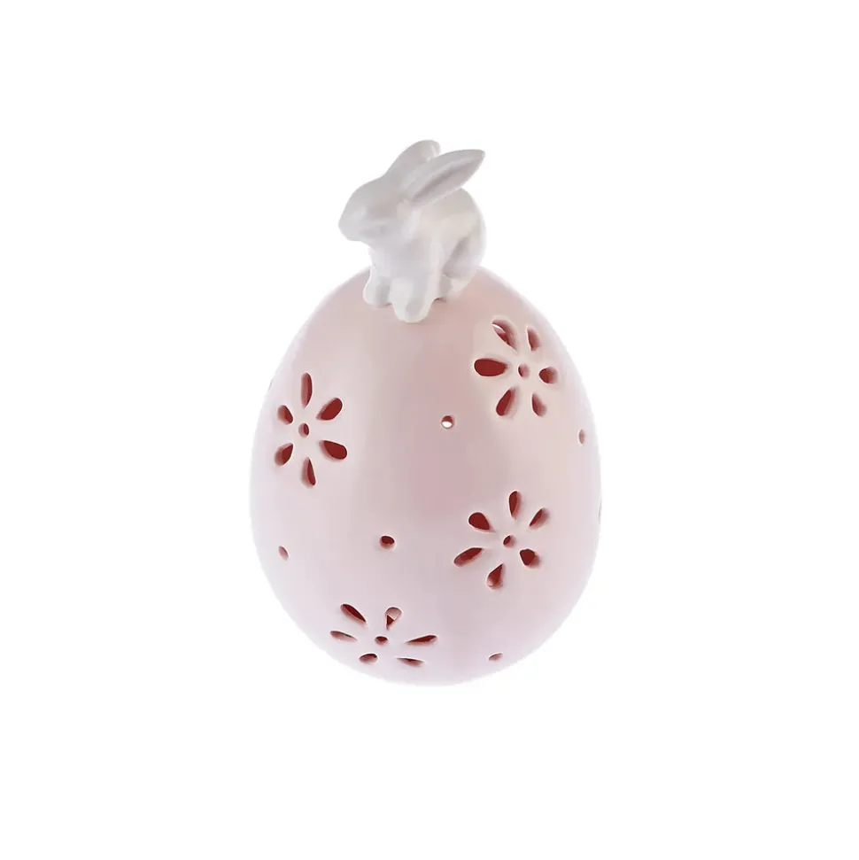Karaca Osterdekoration aus Steingut, Weiß-Rosa