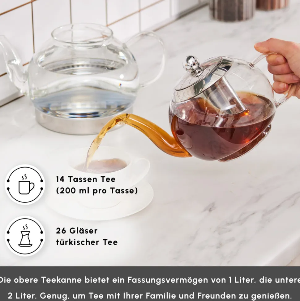 Karaca Pandora Glas-Induktions-Teekannen-Set, Transparent