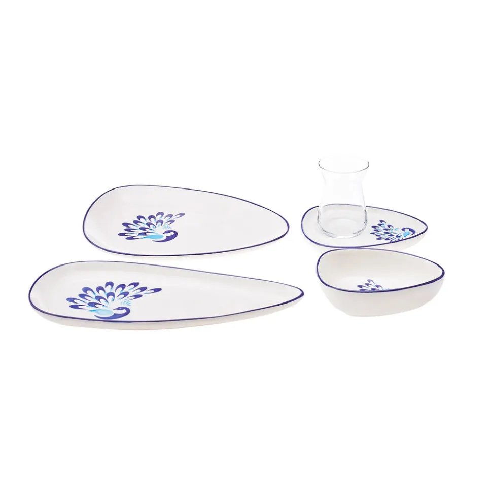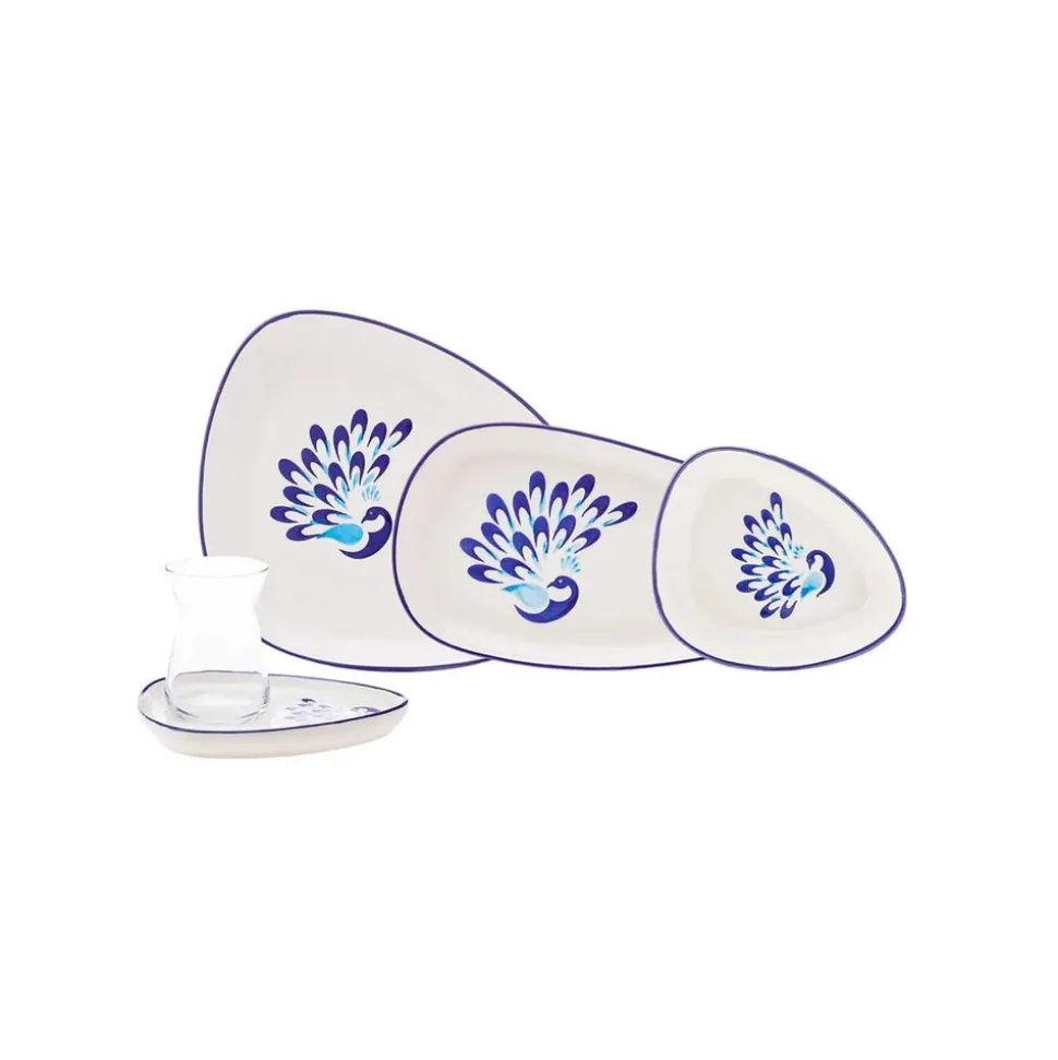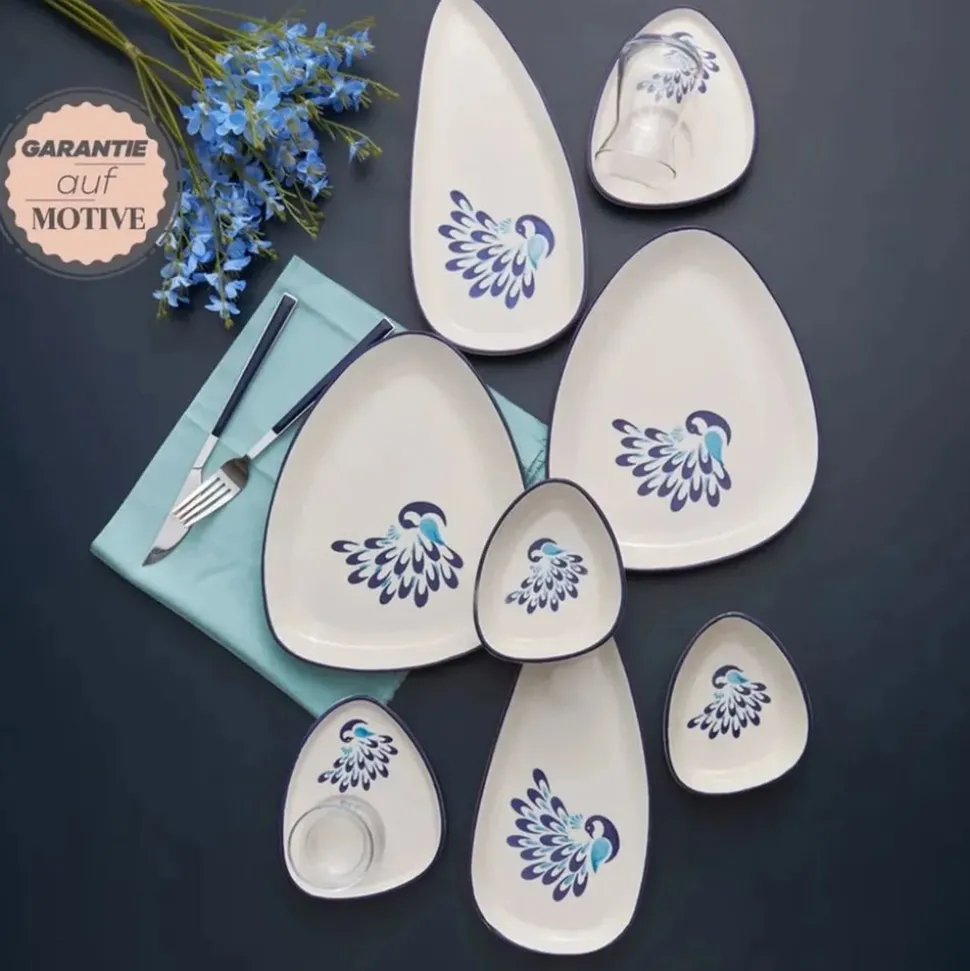 | Karaca Peacock 24-teiliges Frühstücksset und Servierschalen für 6 Personen Material: Steingut (Keramik) Setinhalt