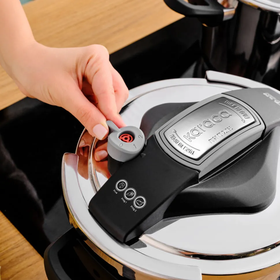Das 4-teilige Schnellkochtopf Set Karaca Perfect Gray 4 + 6 Liter ist ein echter Allrounder unter den Dampfkochtöpfen. Egal, ob Sie kleine oder größere Mengen zubereiten: dank zwei verschiedener Topfgrößen haben Sie in jeder Situation eine Dampfkochtopf mit dem passenden Fassungsvermögen zur Hand.