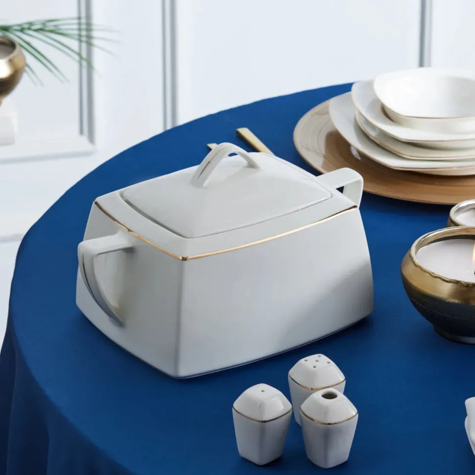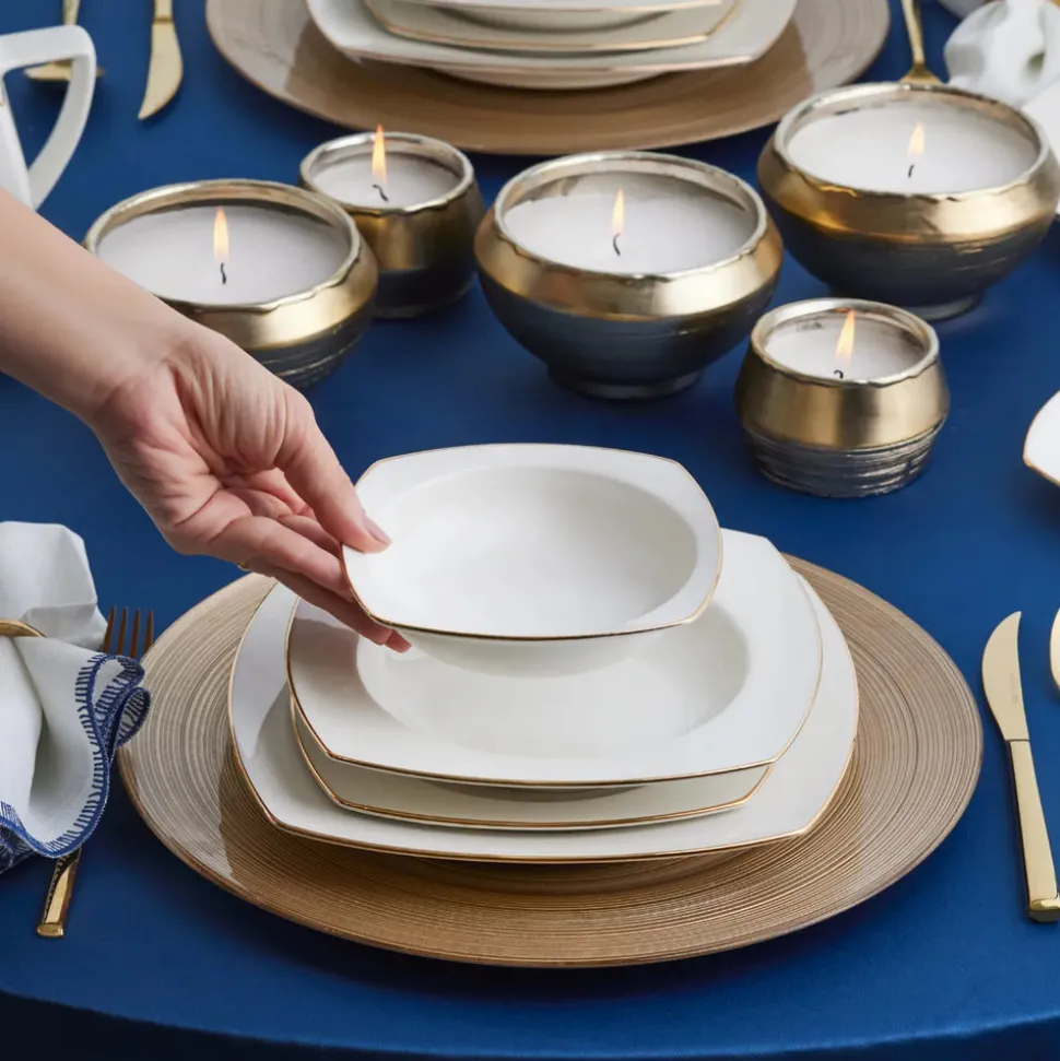Karaca Chiara Fine Cream 12 Personen Geshirrset, 60 Teilig, Porzellan, Gold