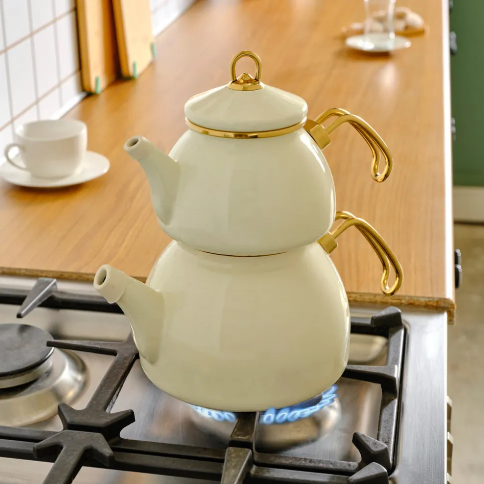 Karaca Retro Emaille-Creme-Teekanne