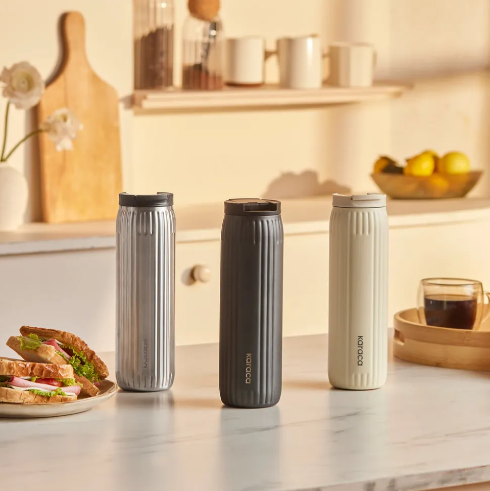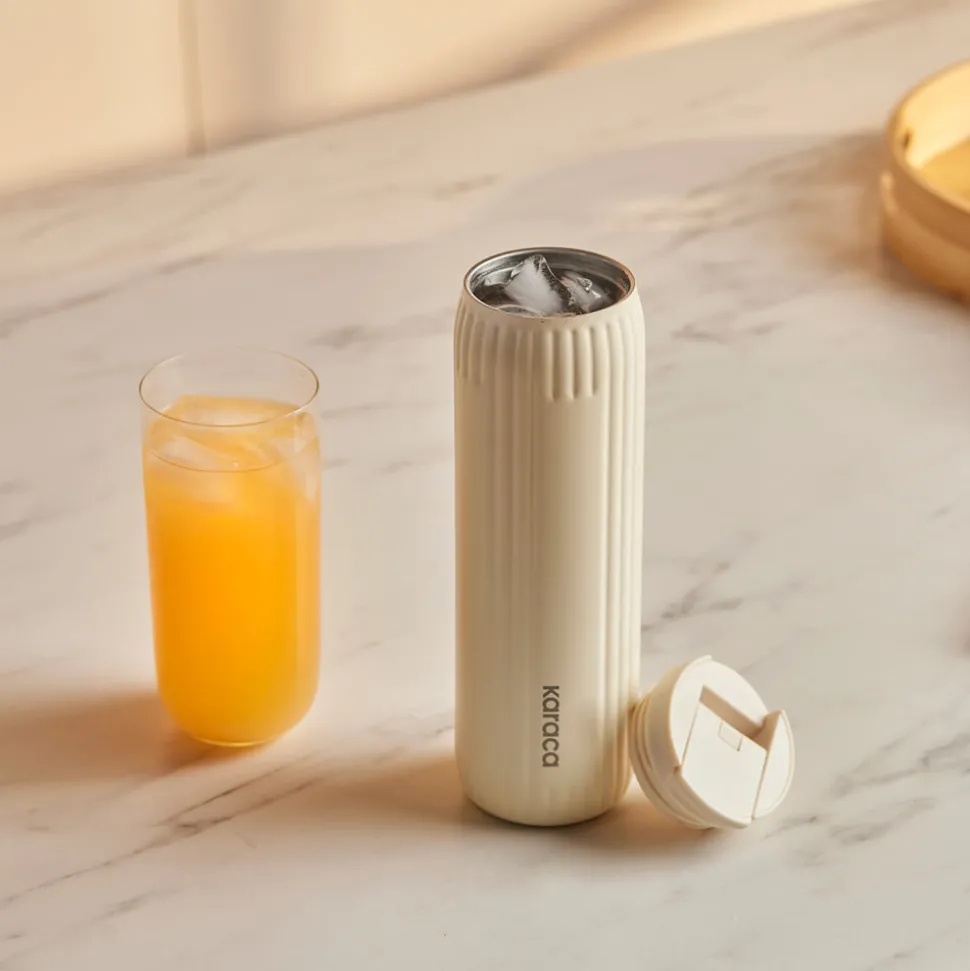 Karaca Rimo Auslaufsicherer Edelstahl-Thermos 600 ml Creme