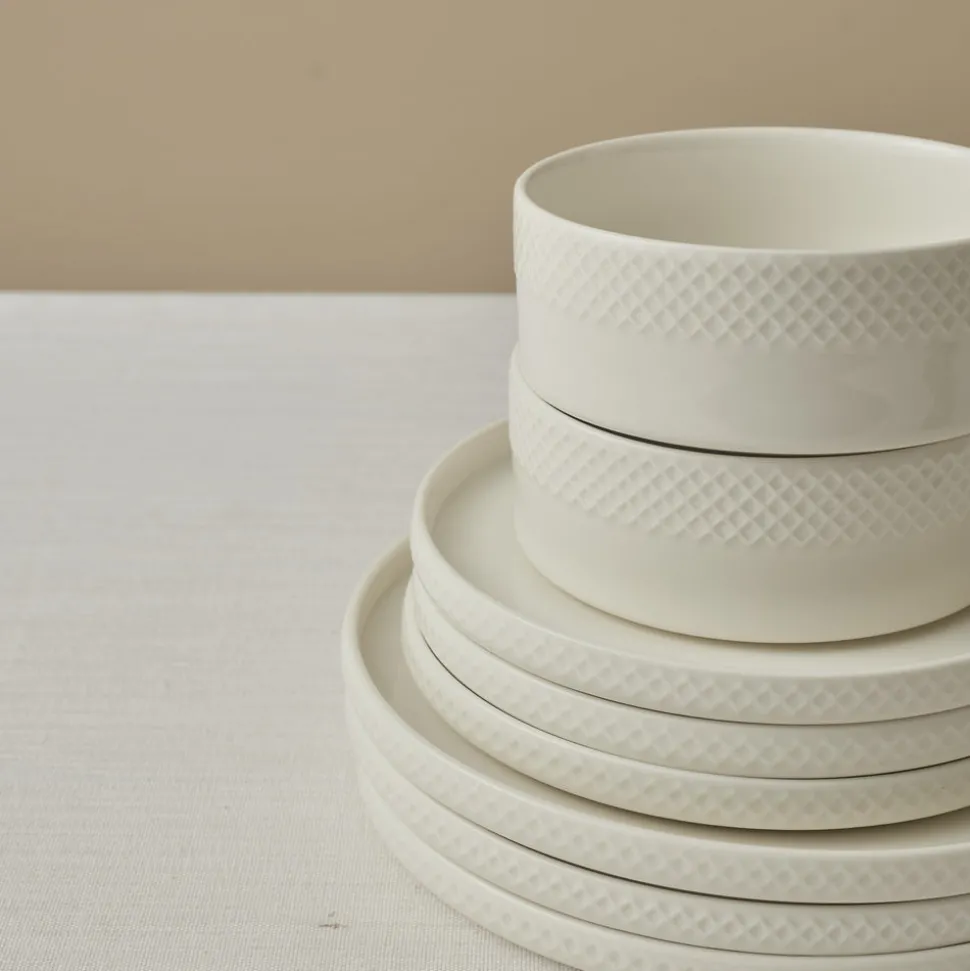 Mit seiner makellosen weißen Grundfarbe und den dezenten, von Diamanten inspirierten Akzenten strahlt dieses Geschirrset Raffinesse und zeitlosen Charme aus. Jedes Teil spiegelt die perfekte Balance zwischen klassischem Stil und moderner Eleganz wider und verleiht Ihrem Esstisch einen Hauch von Luxus.