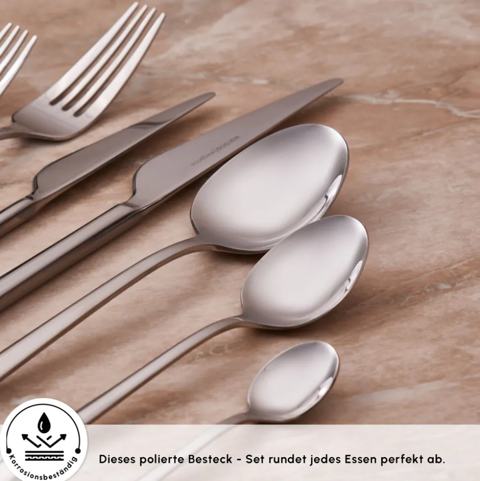 Das Karaca Serena Besteckset ist nicht nur stilvoll, sondern auch praktisch – es ist spülmaschinenfest, was das Aufräumen nach dem Essen einfach und stressfrei macht und sich perfekt für moderne Lebensstile eignet.