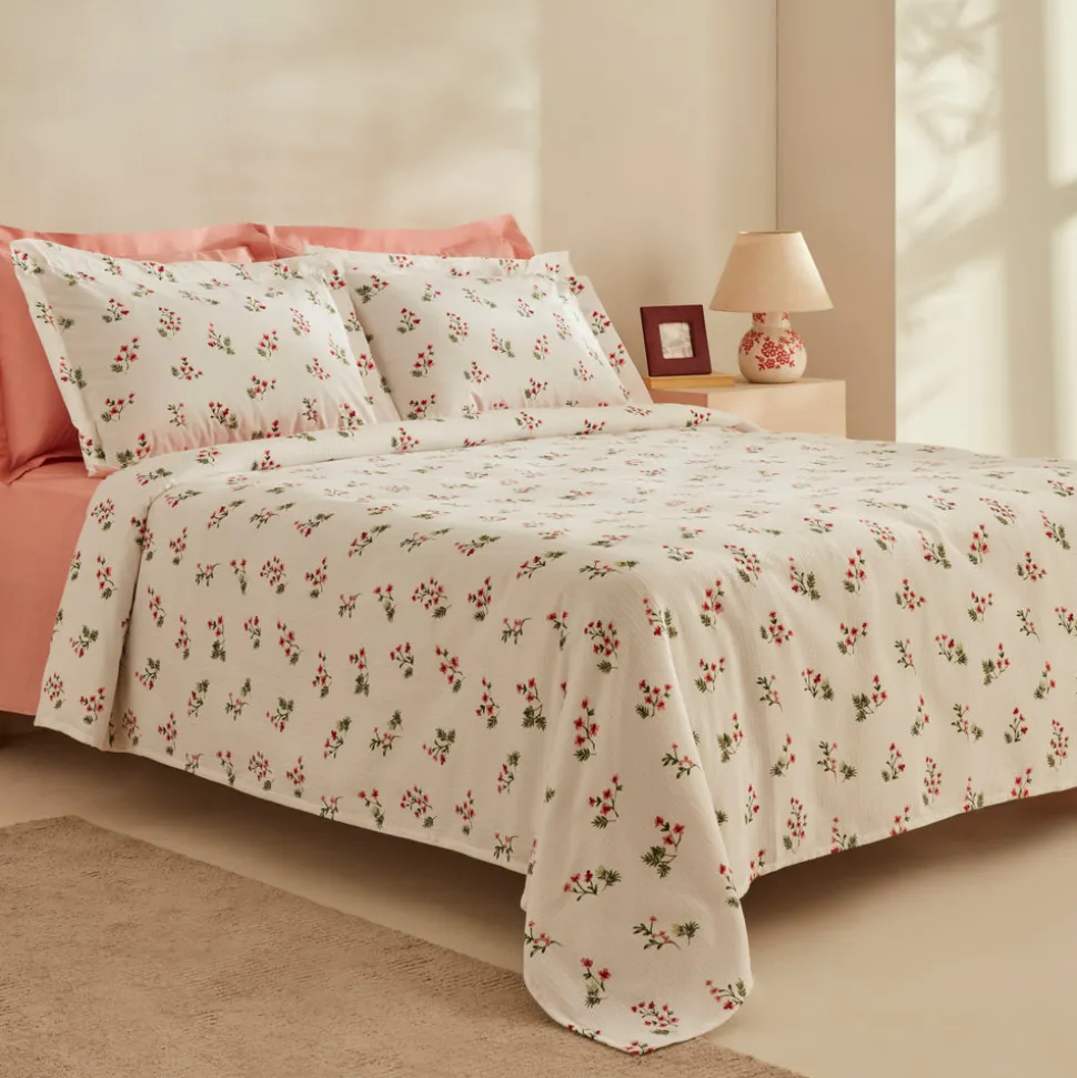 Karaca Silvie Renforcé Bettwäsche-Set mit Rüschen, Doppelbett, Rot