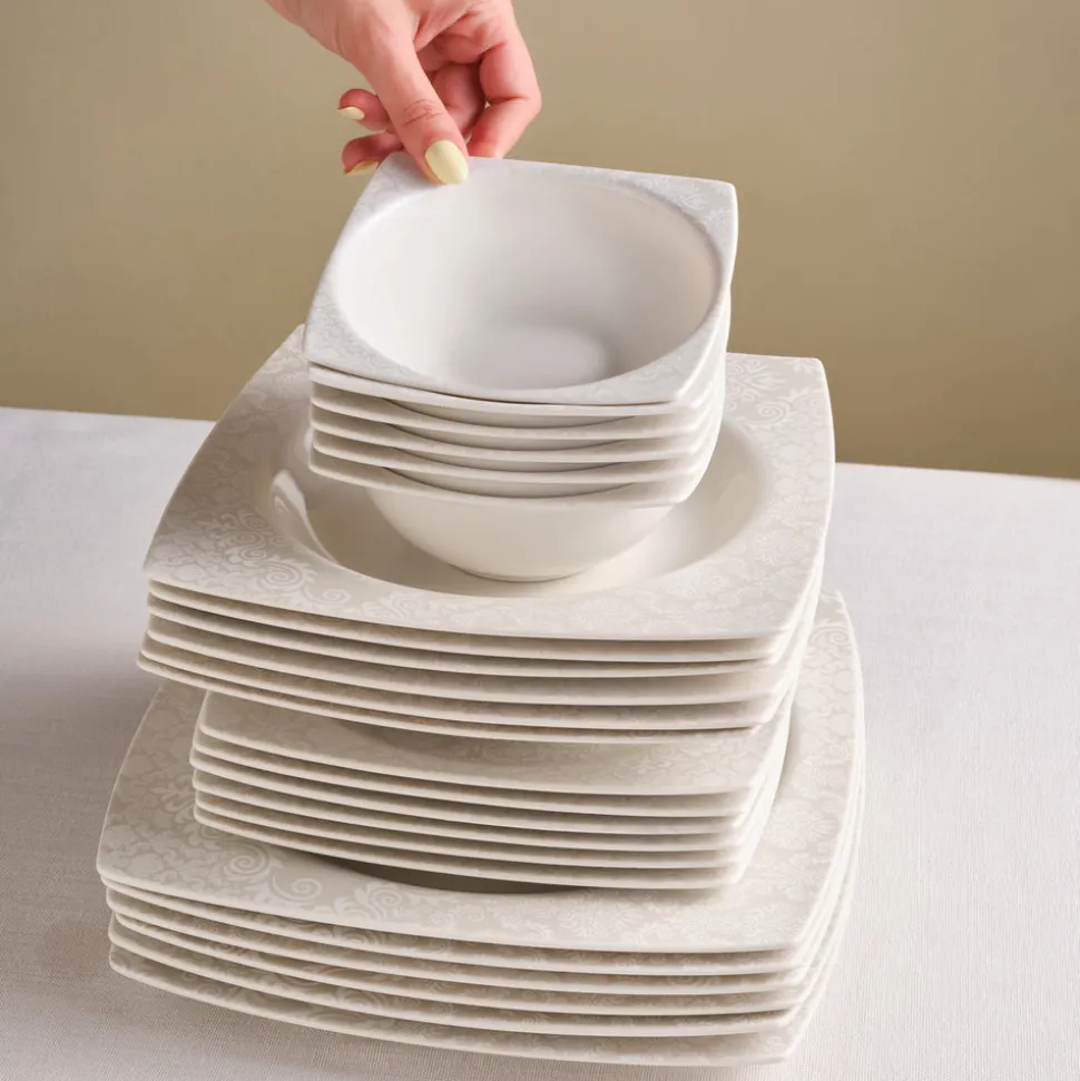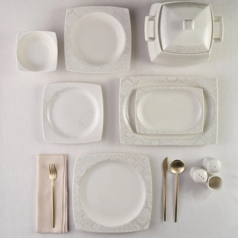 Karaca Square Bone Bridal 60-teiliges Tafelservice für 12 Personen