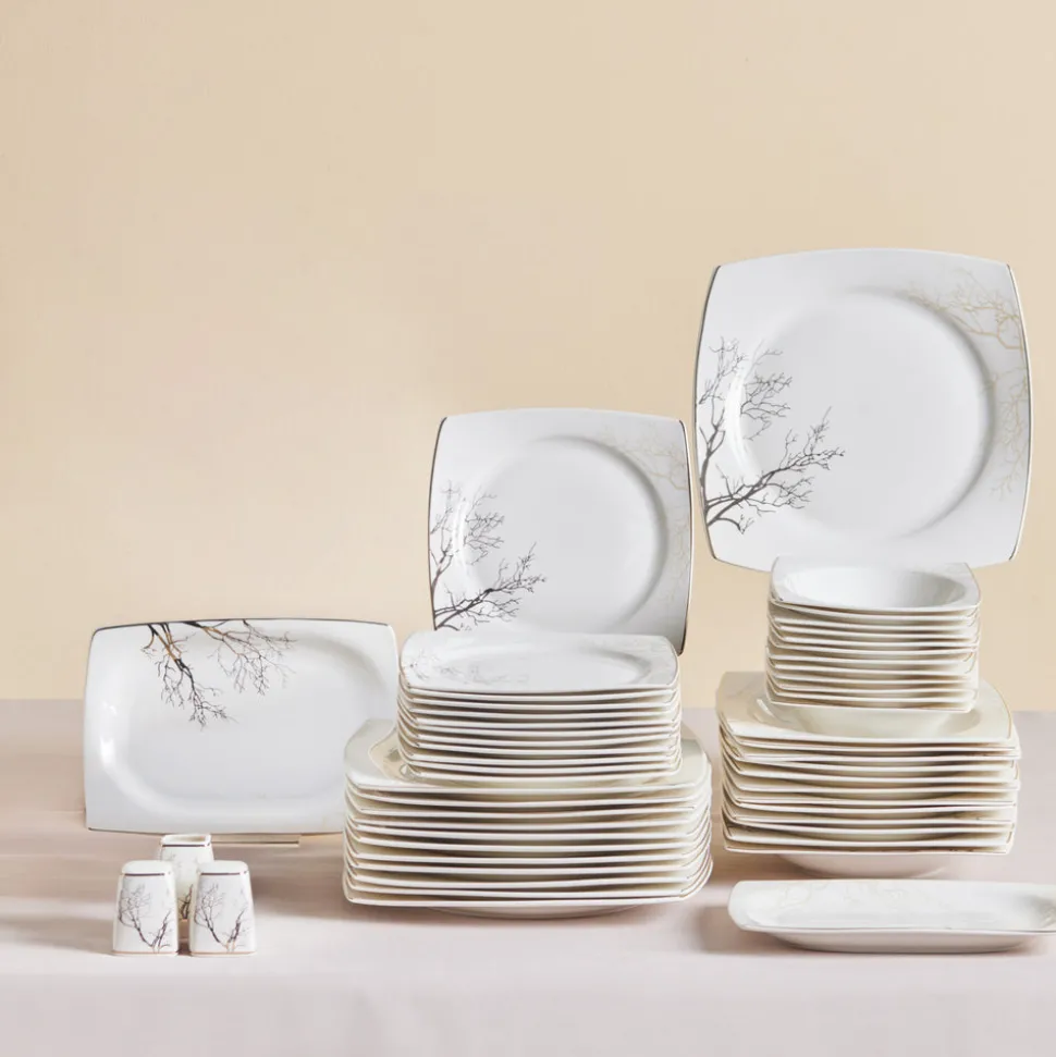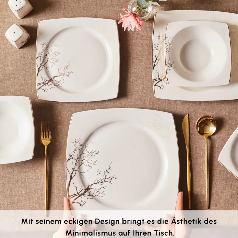 Karaca Square Bone China Autumn 53-teiliges Tafelservice für 12 Personen, Weiß Mehrfarbig