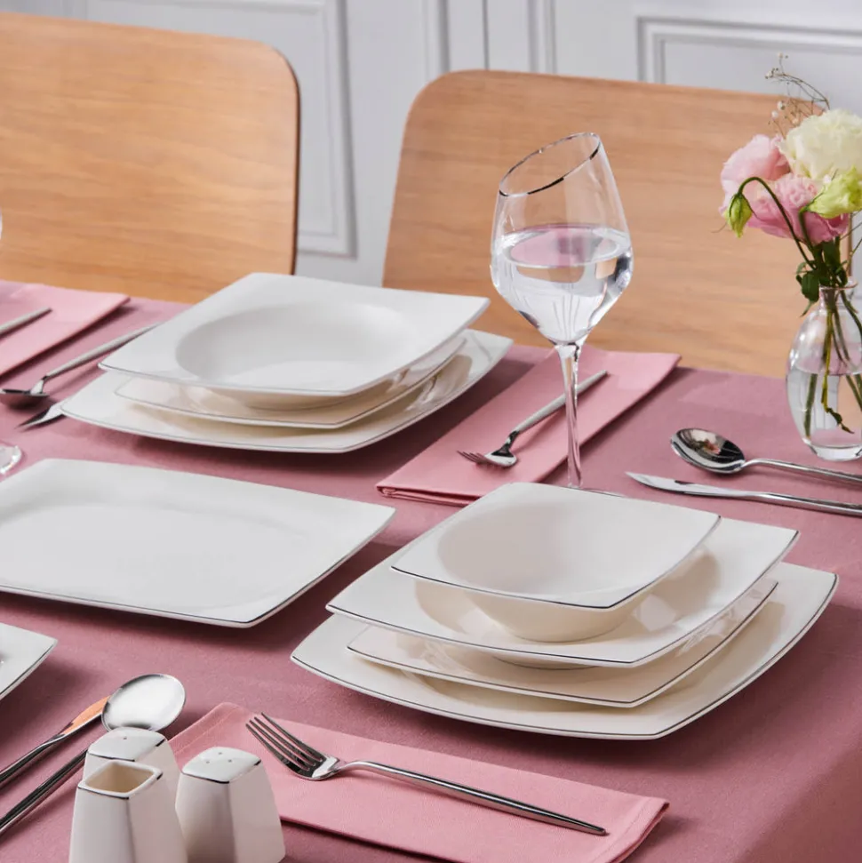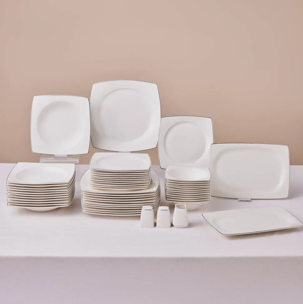 Karaca Square Bone Jamie 53-teiliges Geschirrset für 12 Personen Platin