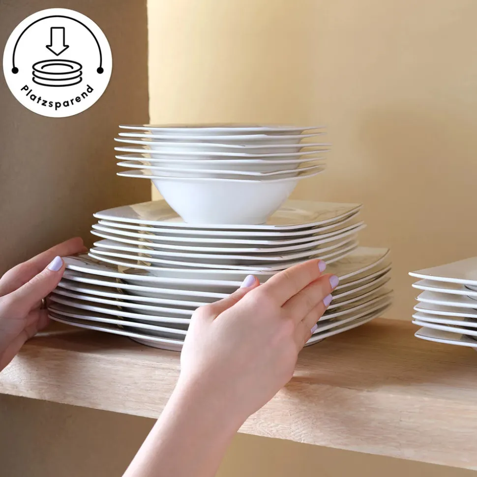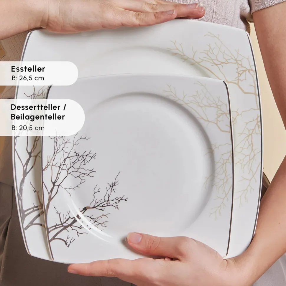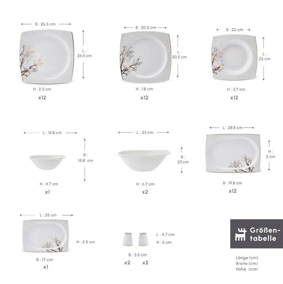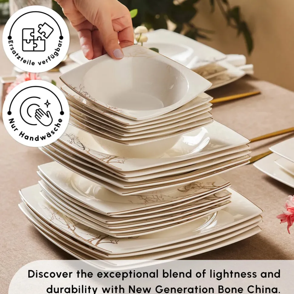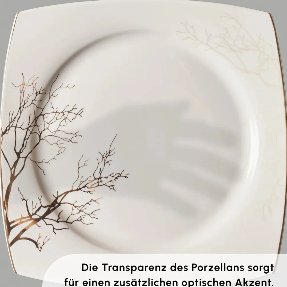 Karaca Square Bone New Autumn 57-Teiliges 12-Personen Geschirrset Gold