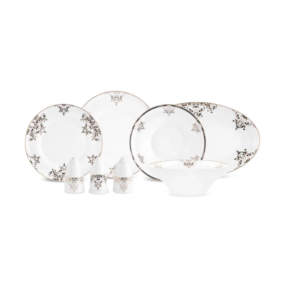 Karaca Stream Bone Andre 53-teiliges Geschirrset für 12 Personen, schwarz