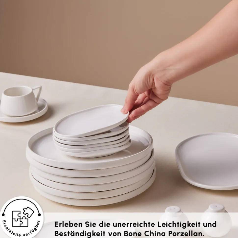 Karaca Stream Bone Meridian 34-teiliges Frühstücksset für 6 Personen – Weiß