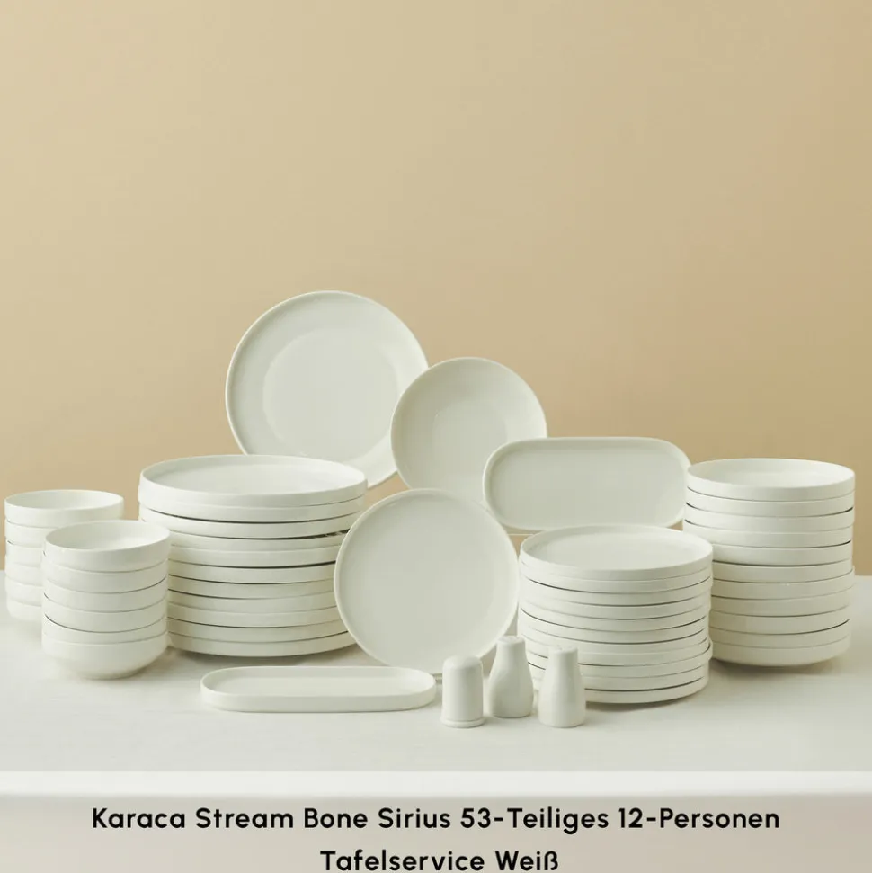 Karaca Stream Bone Sirius 53-Teiliges 12-Personen Tafelservice Weiß