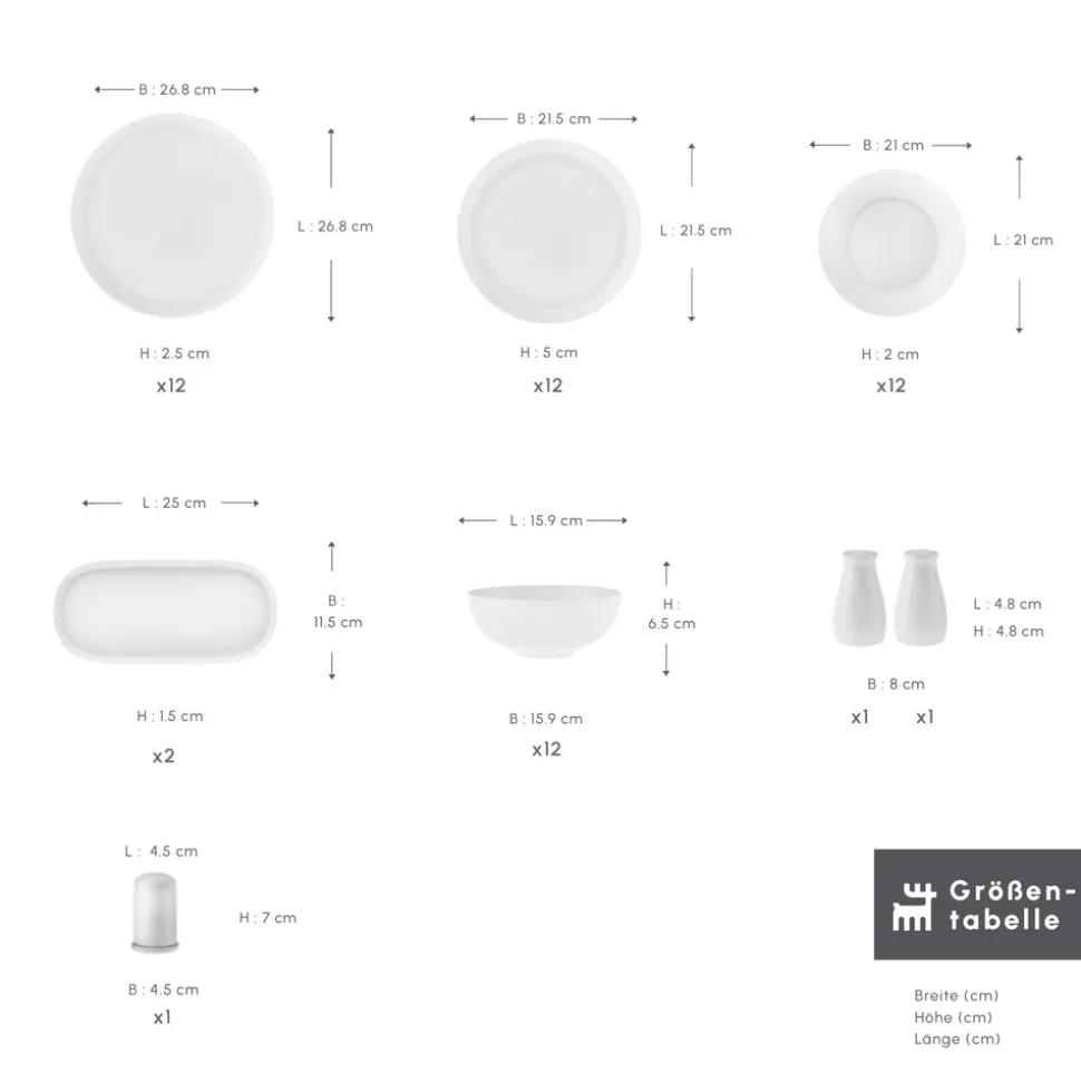 Karaca Streamline Favaro 53-Teiliges 12-Personen Geschirrset Weiß