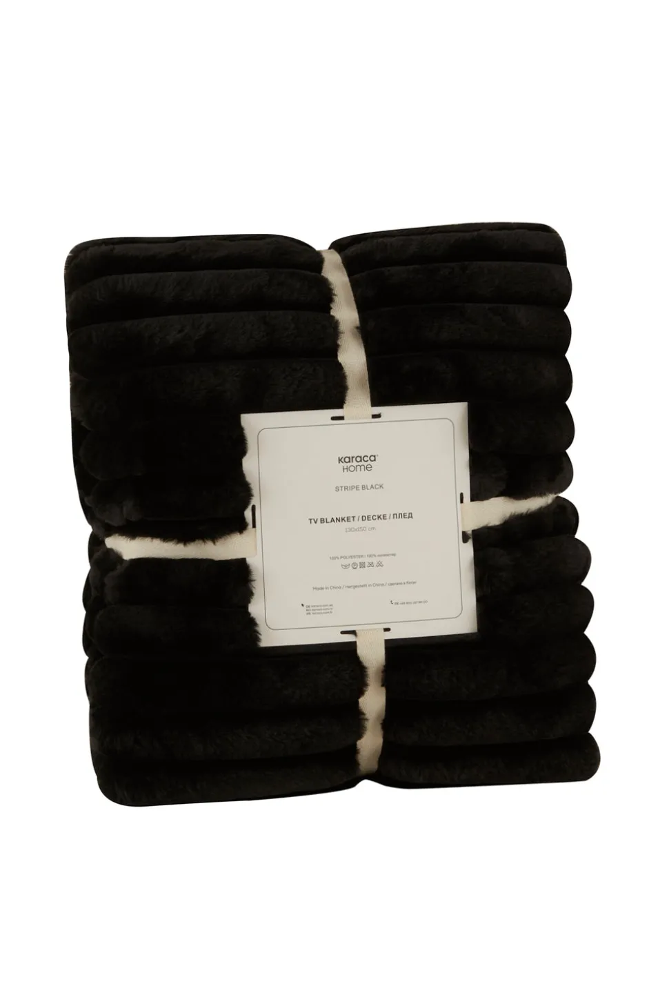 Karaca Stripe Sherpa Schwarze Decke 130×150