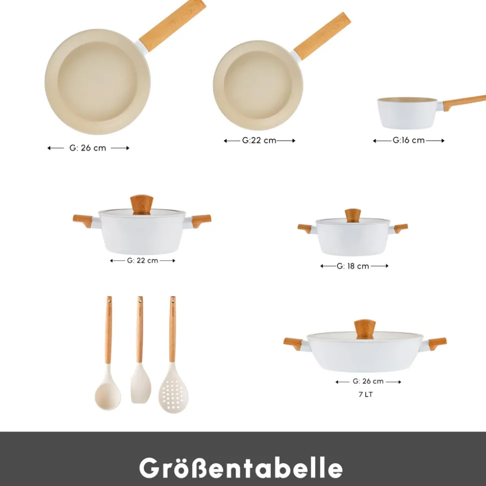 Karaca Swiss Crystal Almond Cream 12-teiliges Kochgeschirr-Set