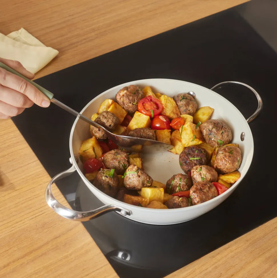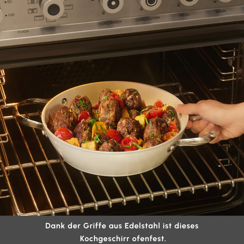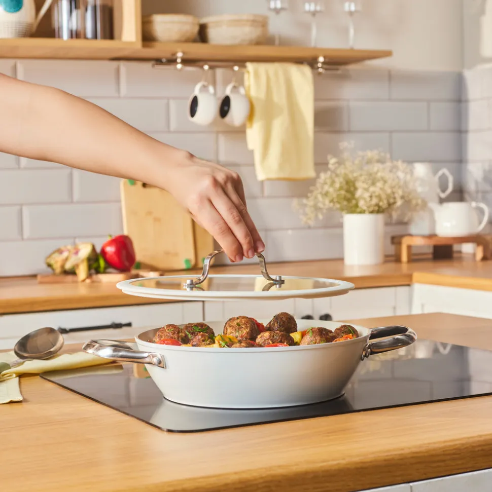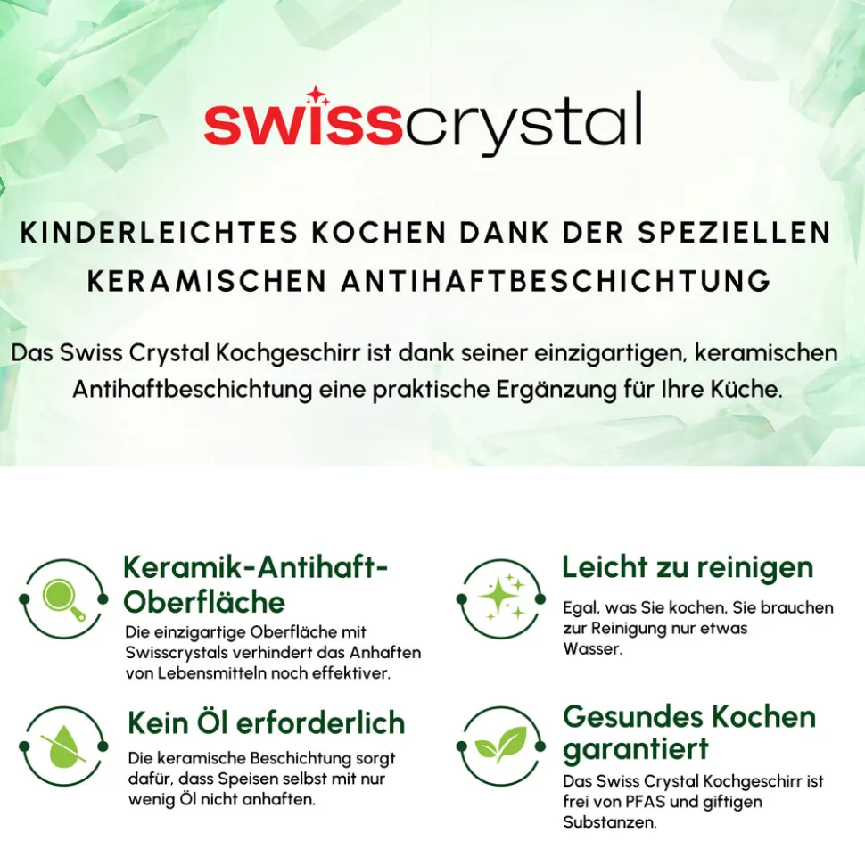 Ein brandneues Pfannenset mit hervorragenden Antihafteigenschaften: SwissCrystal Das Karaca SwissCrystal Pfannenset, das seine Stärke aus der antihaftbeschichteten SwissCrystal Oberfläche bezieht, bietet Ihnen die Möglichkeit, eine Reihe von Gerichten auf praktische Weise zuzubereiten, wie z.B. Eier, Fisch, Hähnchen, und das ganz ohne Öl. Die antihaftbeschichtete Oberfläche wird mit Schweizer Kristallen hergestellt und enthält keine gesundheitsgefährdenden chemischen Verbindungen wie „PFAS“, die die Gesundheit beeinträchtigen. Zudem ist das SwissCrystal Pfannenset leicht zu reinigen! Egal, welches Gericht Sie zubereitet haben, es genügt, es kurz unter Wasser zu halten. Die essentiellen und praktischen Eigenschaften des SwissCrystal Pfannensets erleichtern Ihnen die Zubereitung schmackhafter Gerichte und sorgen für eine einfache Handhabung in Ihrer Küche.