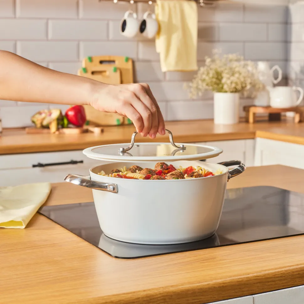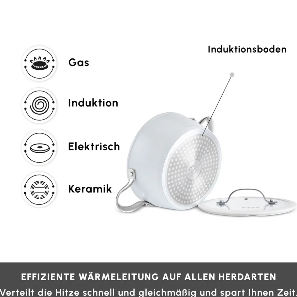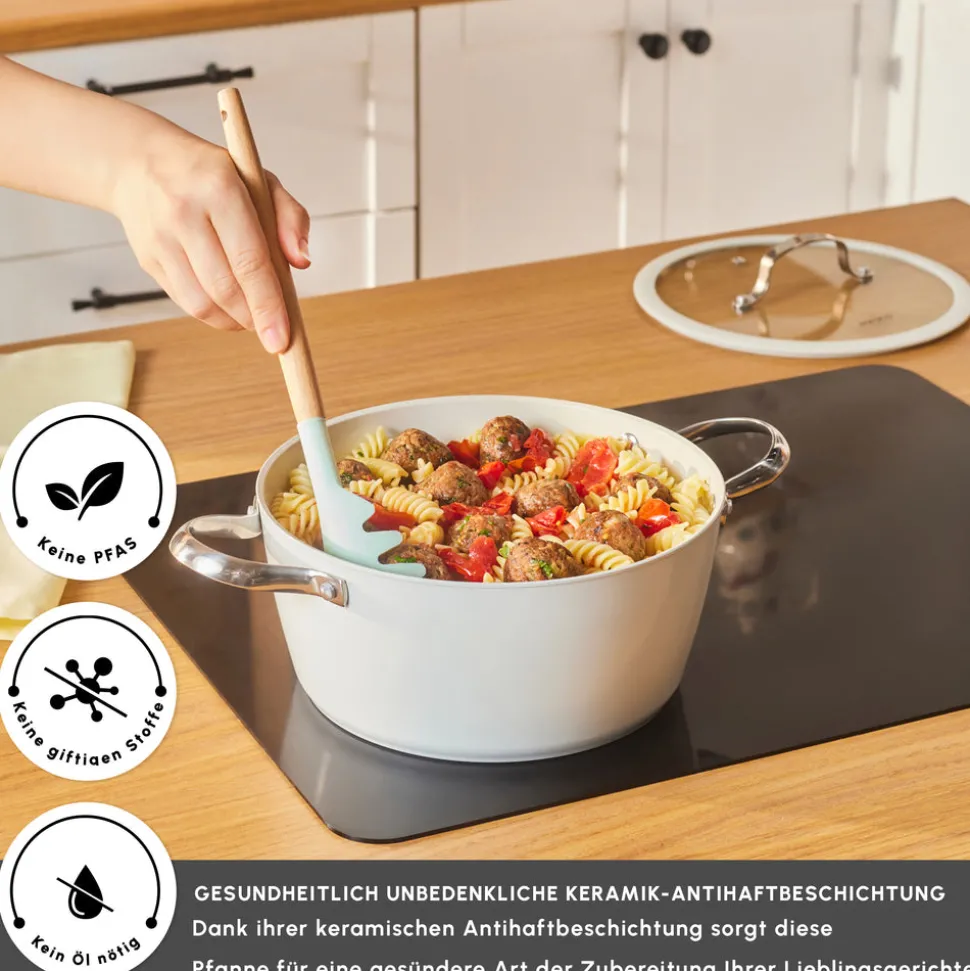Darüber hinaus ist das SwissCrystal Pfannenset äußerst leicht zu reinigen! Egal, welches Gericht Sie zubereitet haben – kurzes Abspülen unter Wasser genügt. Die essenziellen und praktischen Eigenschaften des SwissCrystal Pfannensets erleichtern die Zubereitung köstlicher Speisen und sorgen für eine komfortable Handhabung in Ihrer Küche.