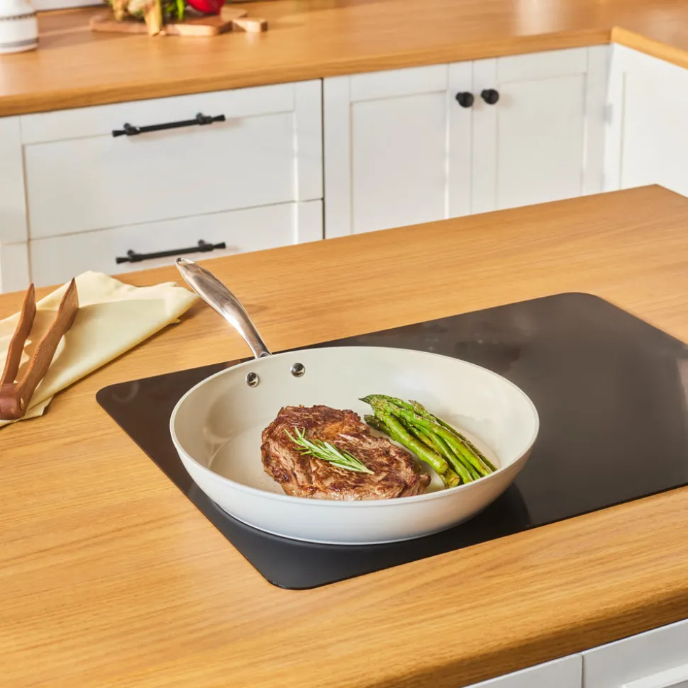 Das Karaca SwissCrystal Pfannenset, das seine Stärke aus der antihaftbeschichteten SwissCrystal-Oberfläche bezieht, ermöglicht Ihnen die praktische Zubereitung verschiedenster Gerichte – wie Eier, Fisch und Hähnchen – ganz ohne Öl. Die Antihaftbeschichtung wird mit Schweizer Kristallen hergestellt und enthält keine gesundheitsschädlichen Chemikalien wie PFAS.